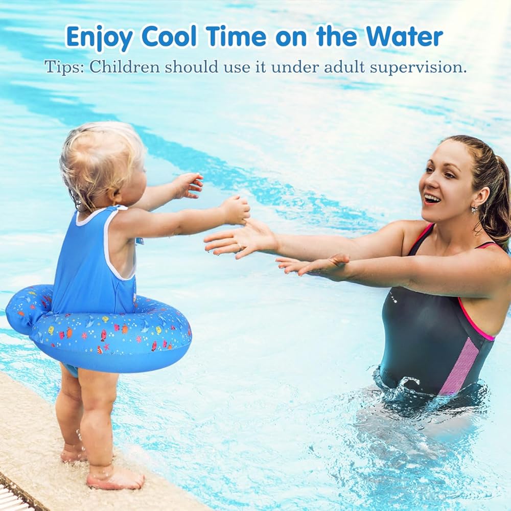 【Adjustable Shoulder Straps】 This toddler swim float for kids features upgraded adjustable straps, easy to put on and off, which can be adjusted and freed according to the child's body to make it more closely with the child body and not easy to fall off and safe when swimming. Please make sure to supervise the child while in float.