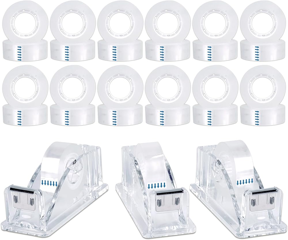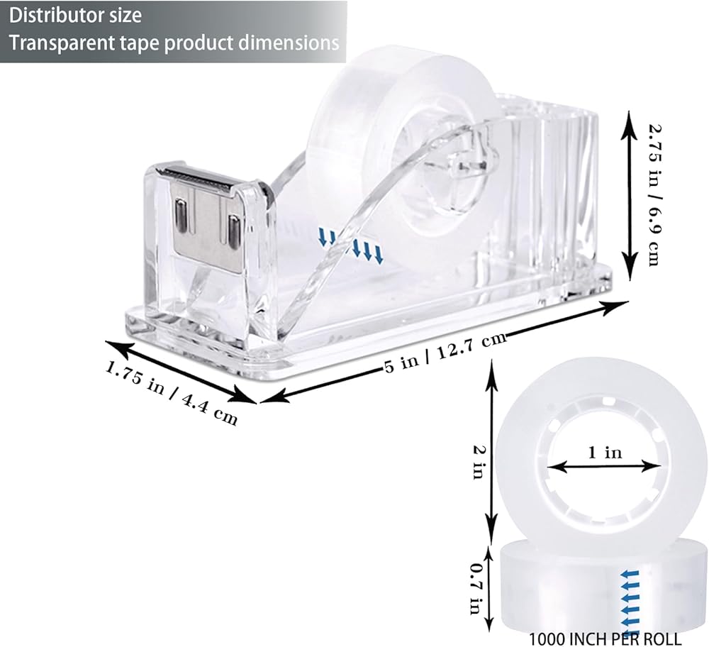 Fine Packaging: The package encloses 3 unique tabletop tape organizers, 27 Rolls 3/4 x 1000 Inches transparent tapes, and replacement potent adhesive pads.
