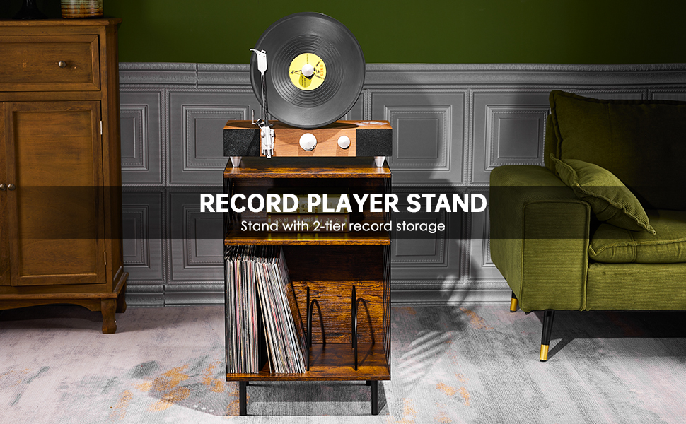 Record Player Stand With Vinyl Storage:The turntable stand provides enough space to store turntables and vinyl records, it meets your different turntable and vinyl record storage needs. At the same time 4 open compartments can store them separately according to the type of records. So you can easily find the vinyl record you want
