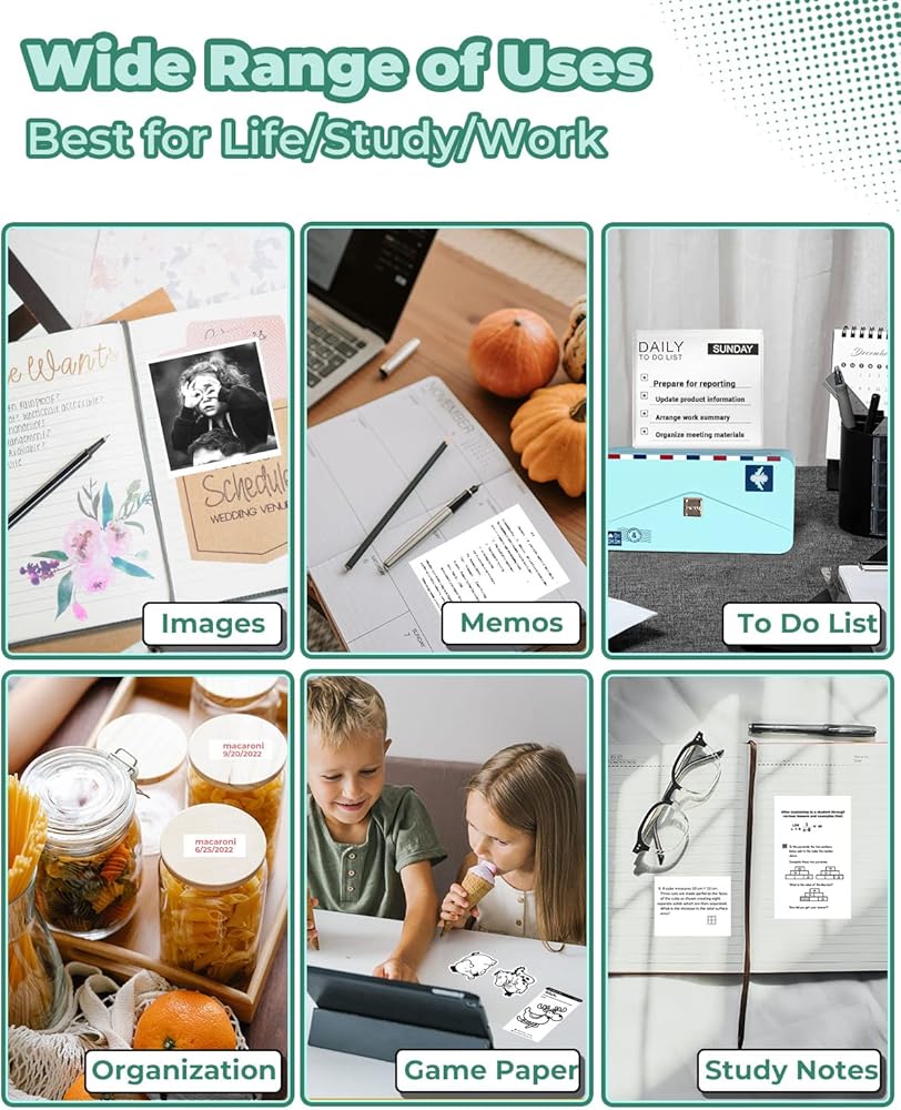 【Multifuntional Pocket Printer】M04AS mini thermal sticker maker is an ideal choice for anyone looking for a convenient and efficient way to print memos, photos, logos, articles, shipping labels, price labels, address labels, and more at home, work, school, or business. It also supports file printing of Word, TXT, and PDF documents, making it a great gift for Christmas, Thanksgiving, birthdays, and more.