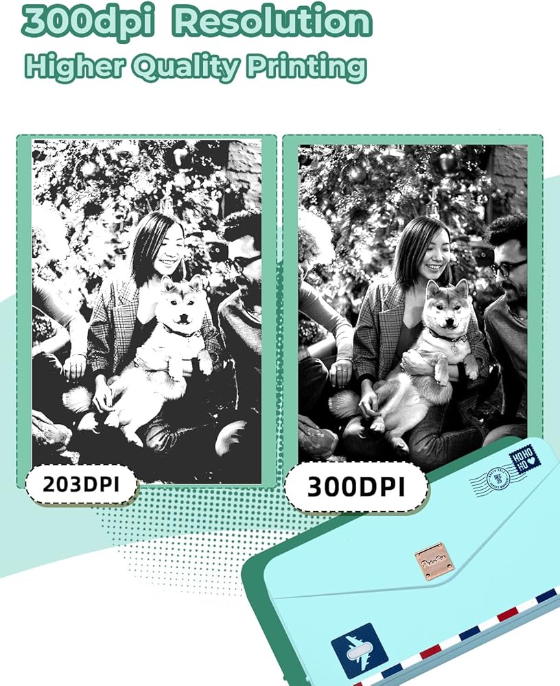 【Higher Printing Quality】M04AS inkless mini thermal printer offers a higher printing quality of up to 300dpi resolution, using thermal technology to produce clear and neat prints that won't turn black, saving you money and time. Black and white printouts.