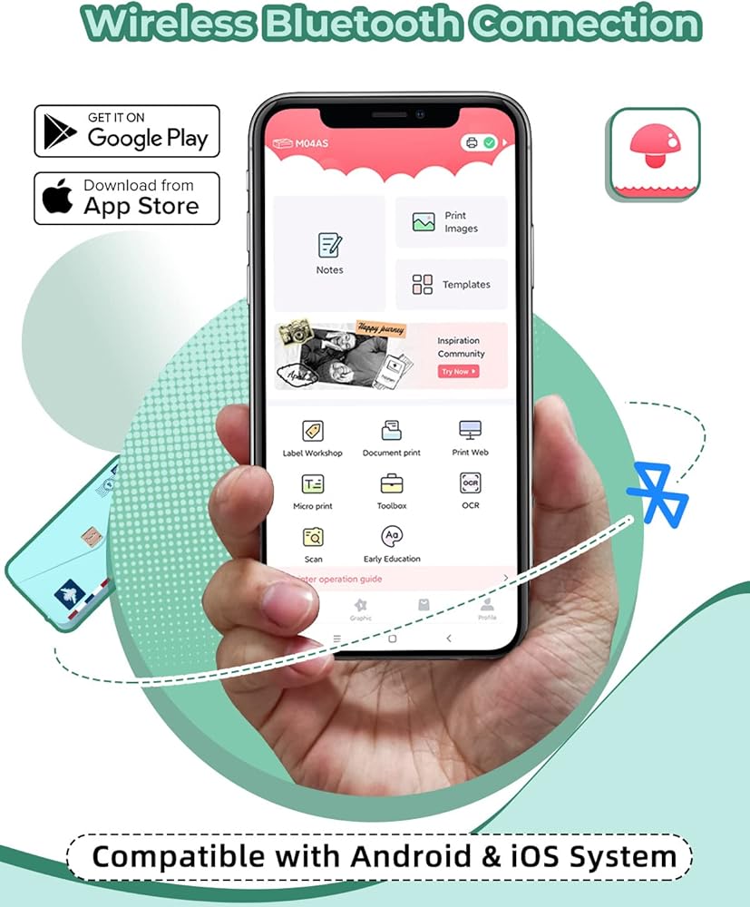 【Smart and Powerful APP】M04AS mini photo sticker printer is used with the free [Phonemo] app, offering 9 powerful functions to customize your printing experience. The "OCR" and "Scan" functions are especially useful for identifying pictures or text on pictures and converting them into editable text. while the "Label Workshop" is great for organizing your home. And you can also find a lot of fun in "Toolbox". Plus, the app is constantly updating with new templates and graphics every two weeks.