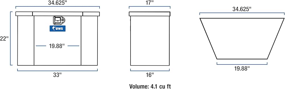 UWS trailer tongue boxes provide unbeatable storage and security for your items wherever you tow your trailer. Each box features a corrosion-resistant aluminum construction, a stainless steel locking system and a patented RigidCore foam-filled lid -- all to keep your equipment and valuables safe, well-organized and easily accessible whenever needed. This trailer tool box can be mounted on a straight-tongue or A-frame trailer, such as a boat trailer or snowmobile trailer. Each UWS trailer tool box is constructed from extra-thick aluminum for increased structural strength. The tub is welded together into a single piece for weather resistance and to easily hold heavy tools and other items. The lid features a patented RigidCore foam-filled design, sandwiched between two aluminum plates. This greatly increases the strength of the lid and helps prevent bending and warping, making operation very smooth. The locking mechanism of the UWS trailer tool box provides excellent security for your items, featuring a stainless steel, key-operated paddle handle. Stainless steel construction supplies the lock with long-lasting corrosion resistance, and the lid also has a MicroSeal gasket, blocking moisture, dust and insects from getting inside and damaging your valuables. The lid also opens a full 90 degrees for easier access, and it is equipped with self-opening struts for convenient operation when your hands are full. UWS trailer boxes are available in multiple sizes to accommodate any storage need. Like all UWS products, each one is proudly assembled right here in the USA for style and long-lasting dependability (NOTE: This product is heavily packaged for parcel shipping).