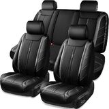 【PREMIUM LEATHER】The full set car seat covers made of high-grade leather, which no odor and Comfortable touch. It is breathable, waterproof, wear-resistant, easy to clean and suitable for all seasons. It is equipped with thick and high-quality high-density foam to create top elasticity and achieve maximum comfort during driving.