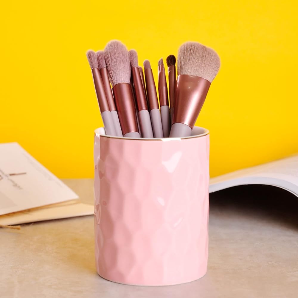 WHJY Gold Ceramic Brush Holder, Pencil Cup. This modern cute designed pencil holder is made of quality ceramic with classy glaze. It's perfect for organizing pen, brushes, eyebrow pencils, eye lip liners, eyebrow razors.