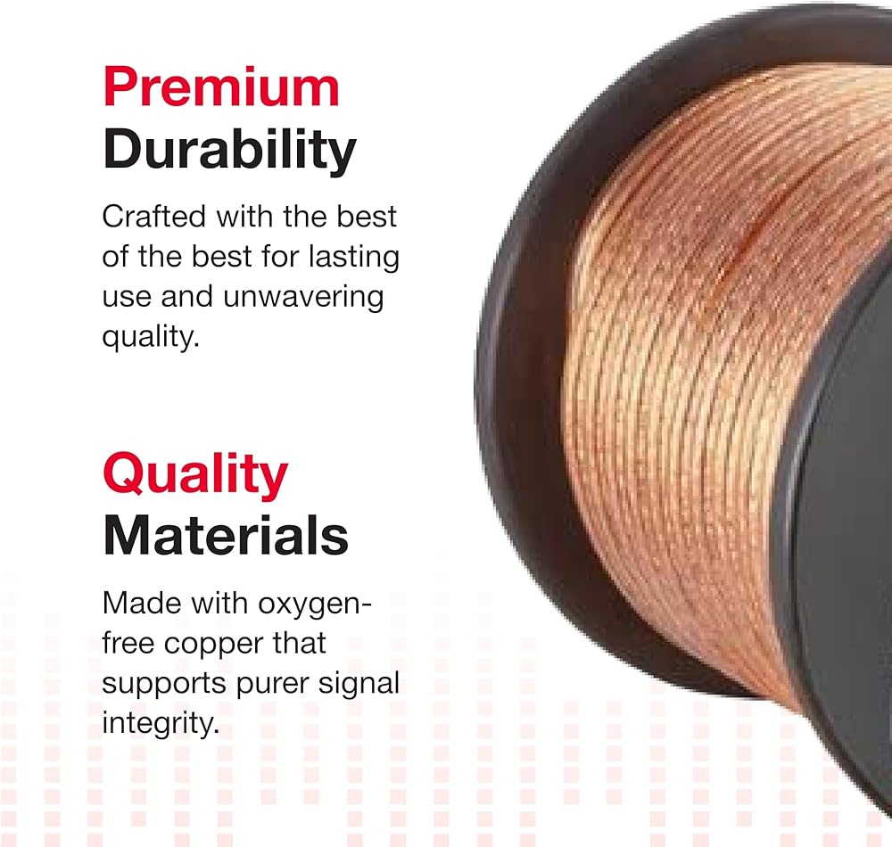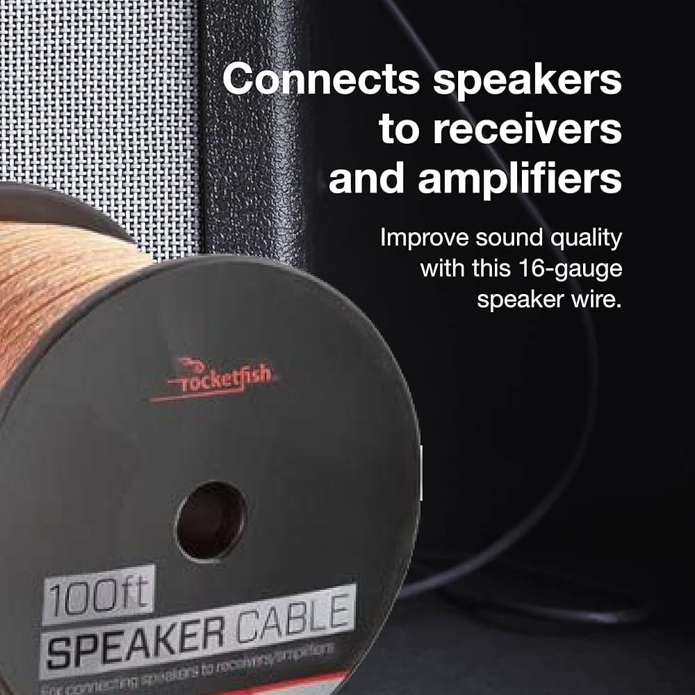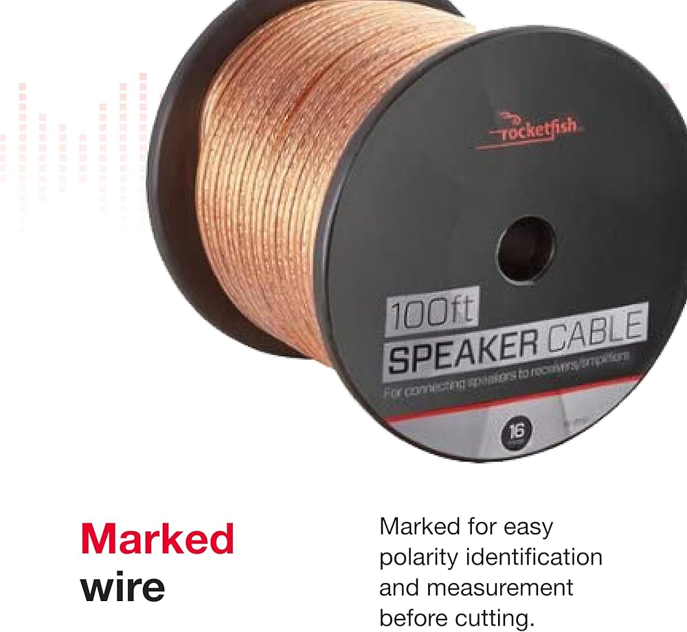 Rocketfish 100' 16 Gauge Pure Copper Speaker Wire - Heavy-Duty Pure Copper Wire for Home & Car Audio - Flexible & Durable Speaker Wire - 16 AWG Copper Wire for Optimal Signal Transfer
