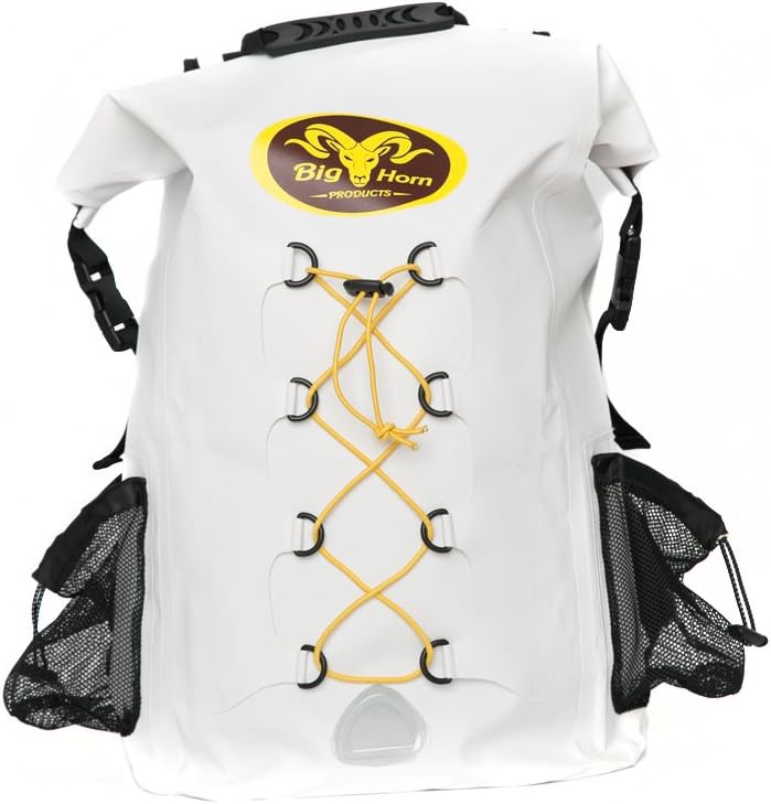BIG HORN PRODUCTS WATERPROOF BACKPACKS provide protection in all environment (sleet, snow, ice, mud, sand and submersion). Protects electronics, clothing, towels, books, and valuables from exposure to water. Allows for the Transport dry and wet items via our exterior dry web straps. This lets you keep wet and dry items completely separate. Air Flow padded back support for added comfort. Makes carrying heavy loads comfortable and cool. Variable adjustment sternum strap. Low profile, variable adjustment shoulder straps make the pack one-size fits all. Rear facing reflective indicator provides viability a safety at night