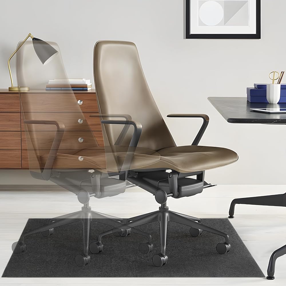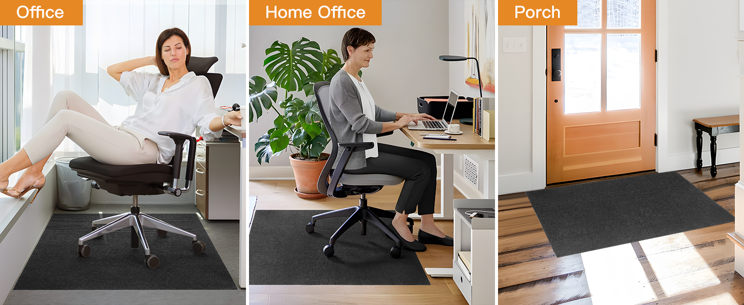 【Slip Resistant】The adhesive backing provides a strong grip for the desk floor mat, avoiding sliding around and bunching up. When you pull off the PP (clear) film on the backside and lay the mat down, it sets perfectly and adheres to the floor without rolled-up corners