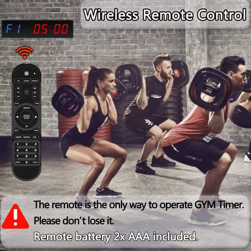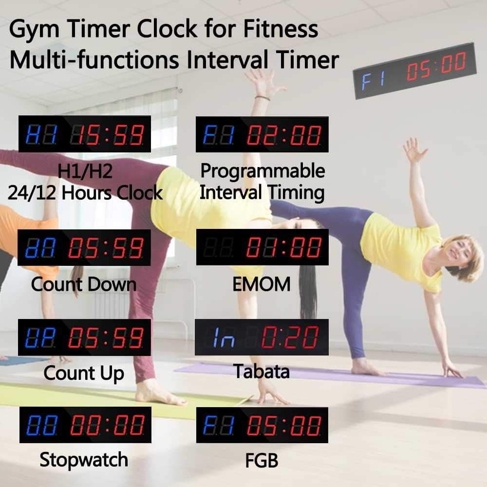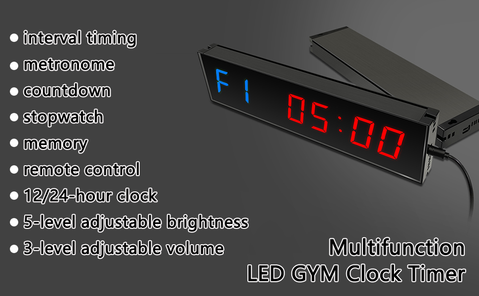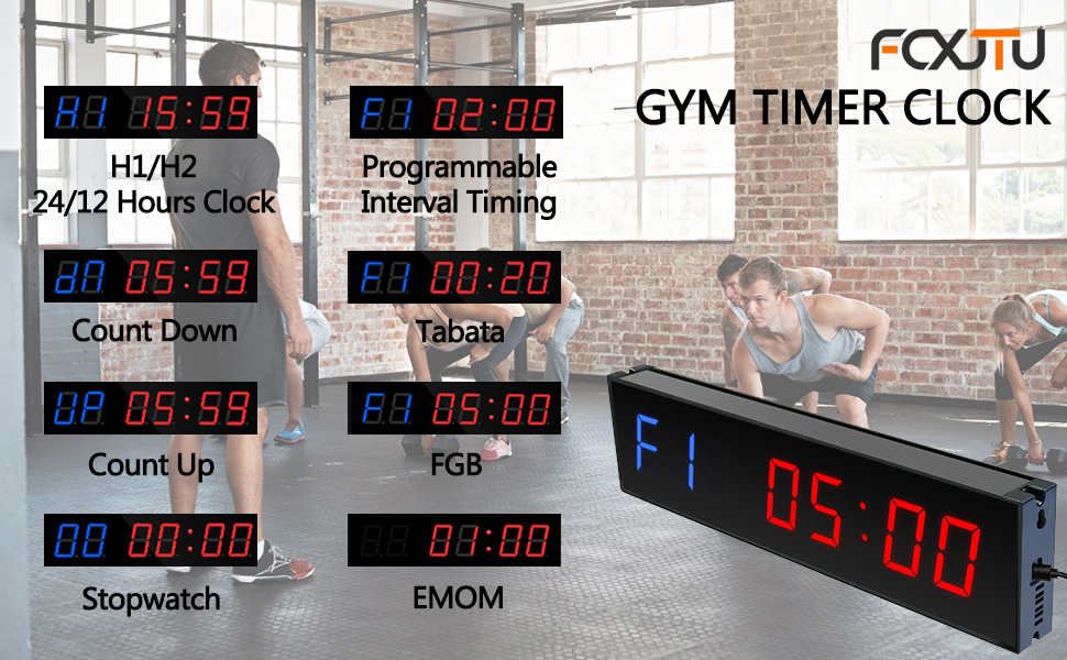 MULTI-FUNCTION GYM TIMER: This gym training timer has 5 different functions. 12/24-hour clock, stopwatch, countdown or countup timing, and Interval timer, Tabata, FGB, EMOM/Boxing/HIIT/MMA/UFC.