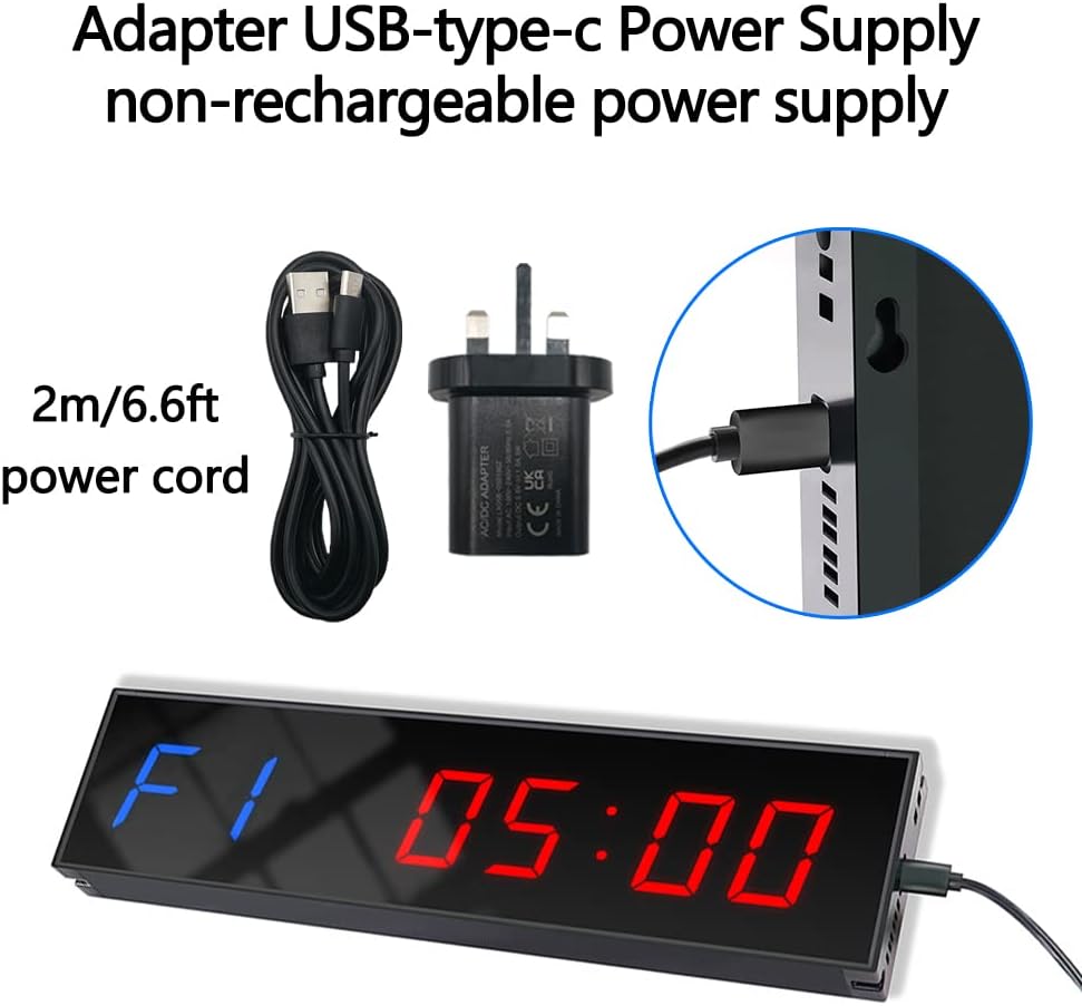 GYM CLOCK: clock dimension: 11.41'' W x 3.93'' H x 1.57'',Package included:1x power adapter; brackets and screws ; 1x Remote control ; Timer ; 1x User manual.