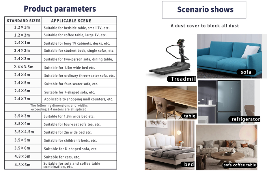 Suitable for a Variety of Furniture: Our furniture dust protection covers are available in various sizes, which can be applied to beds, sofas, bedside tables, coffee tables, computer desks, desks, long TV cabinets, ordinary three-person sofas, dining tables and chairs, U-shaped sofa, car, you can choose the right size according to your needs.