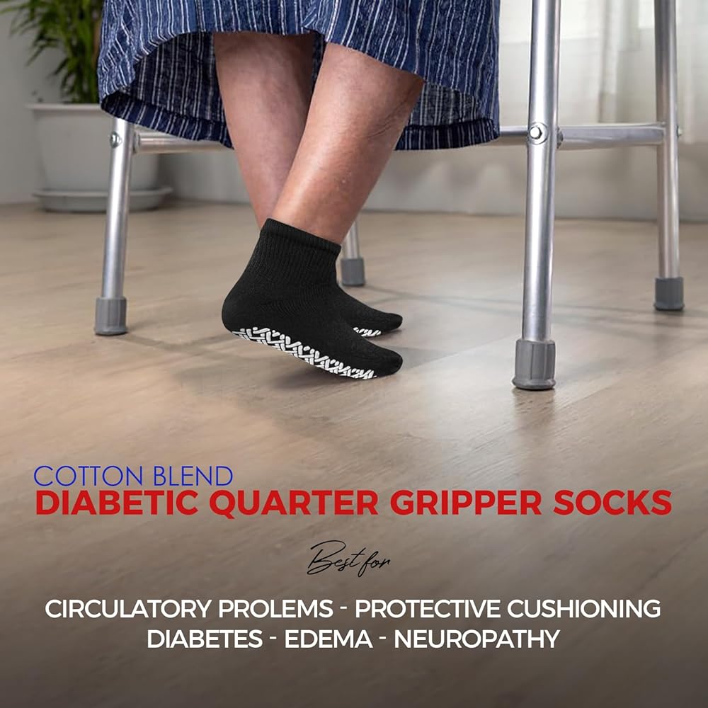 Feel the Cushioned Comfort in Everyday Step With Excellent Men's Diabetic Socks With Gripper Bottom From Diamond Star Socks. Doctor Recommended High Quality Medical Socks To Help Blood Circulation in Your Legs. At a Price You Can Afford: Size: Socks Size 10-13 / Fit Shoes Size 7-12. Premium Super Soft Cotton with Extra Stretch. Full Cushioned Foot and Smooth Comfort Toe Seaming For Eliminates Pressure Point.