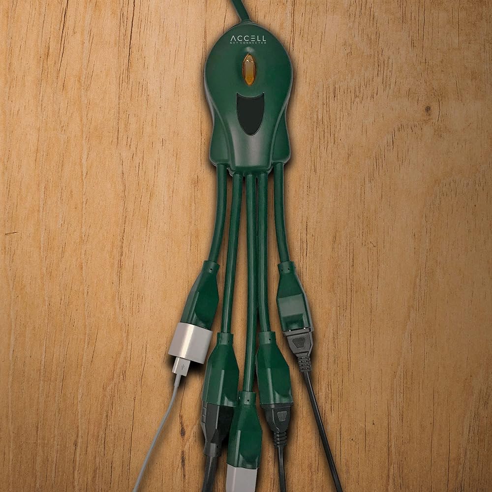 The Accell Flexible Power Outlet Multiplier is a safe and easy way to convert 1 grounded wall outlet to 5 grounded adapter-compatible outlets. It accommodates up to 5 bulky transformer plugs with ease, providing more flexibility than a standard power strip.