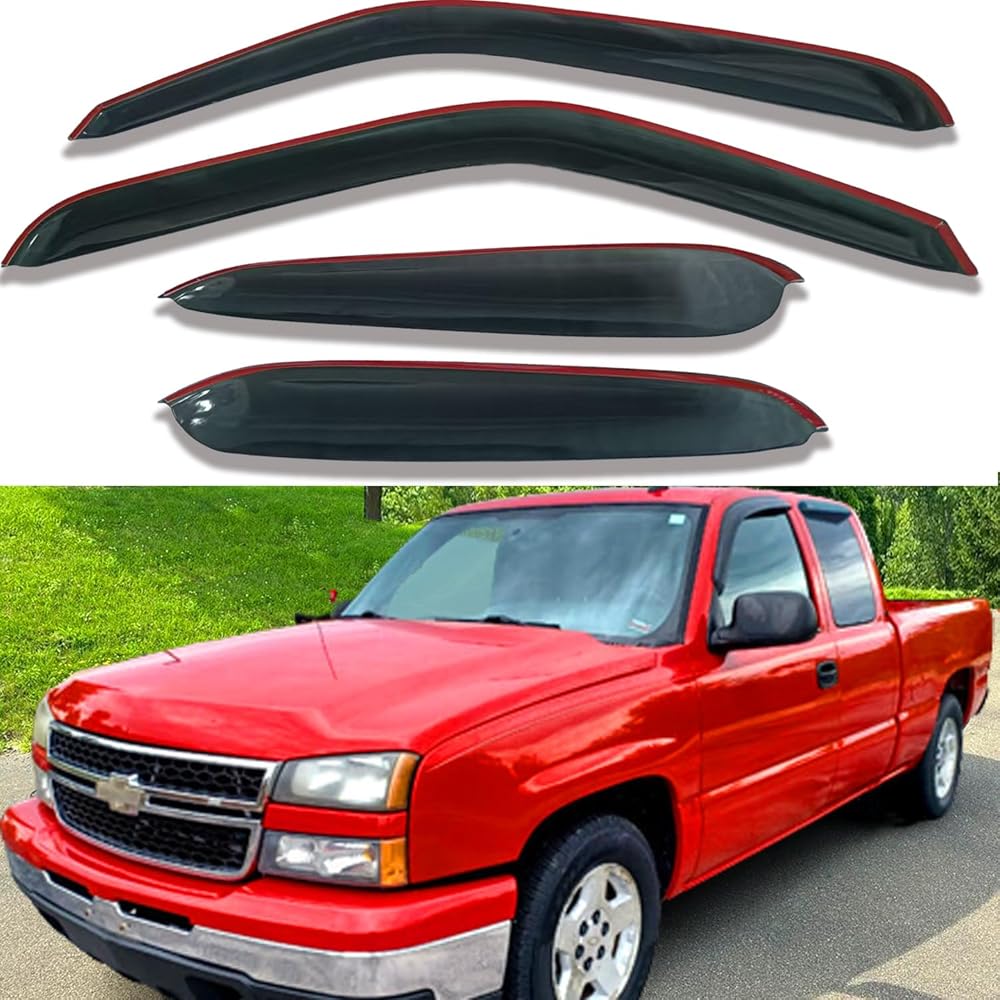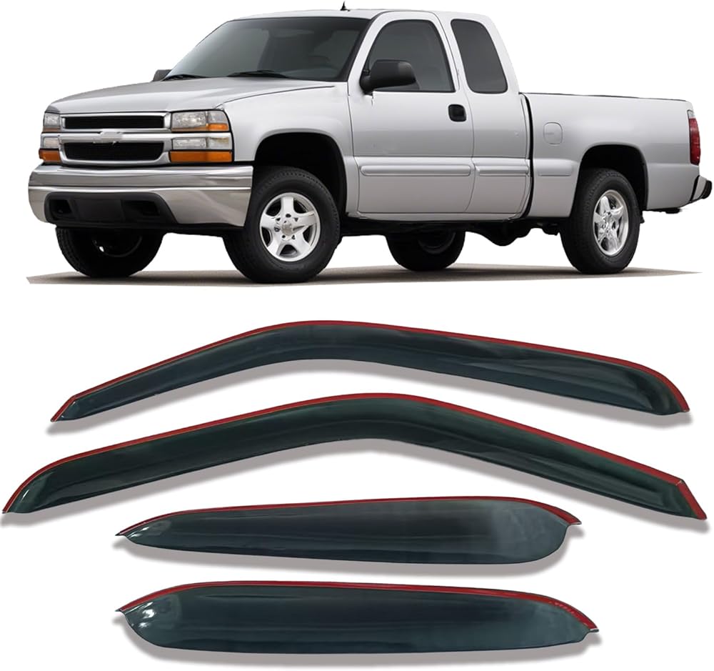 Side Car Window Visors Window Shade Vent Deflectors for 99-06 Chevrolet Silverado & GMC Sierra 1500 2500 3500 2500HD Rain Guards, 07 Silverado & Sierra 1500 3500 2500HD, with Extended Cab 94044 4-pc