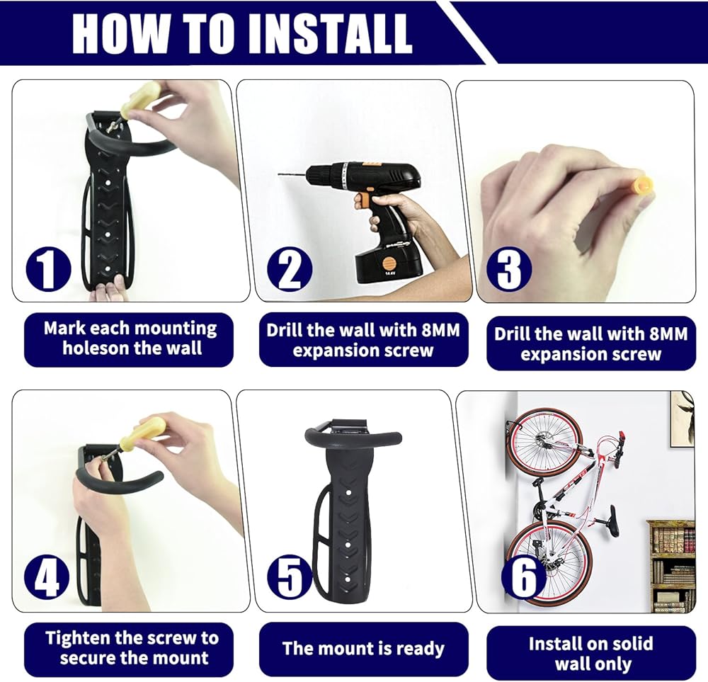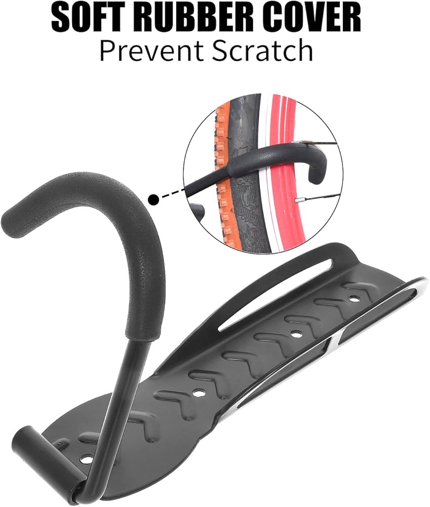 ✓【Safety】 – Wall bike rack features hook with rubber coating to protect your bicycle from scratches, and safety locking mechanism prevents accidental release.