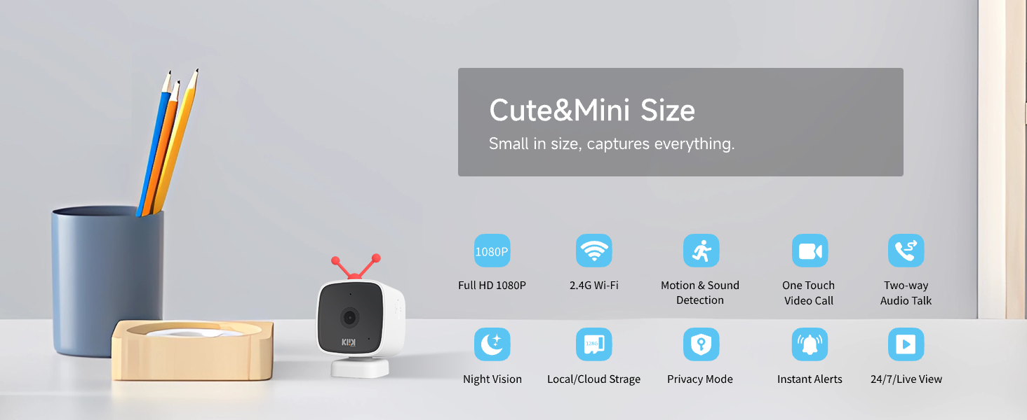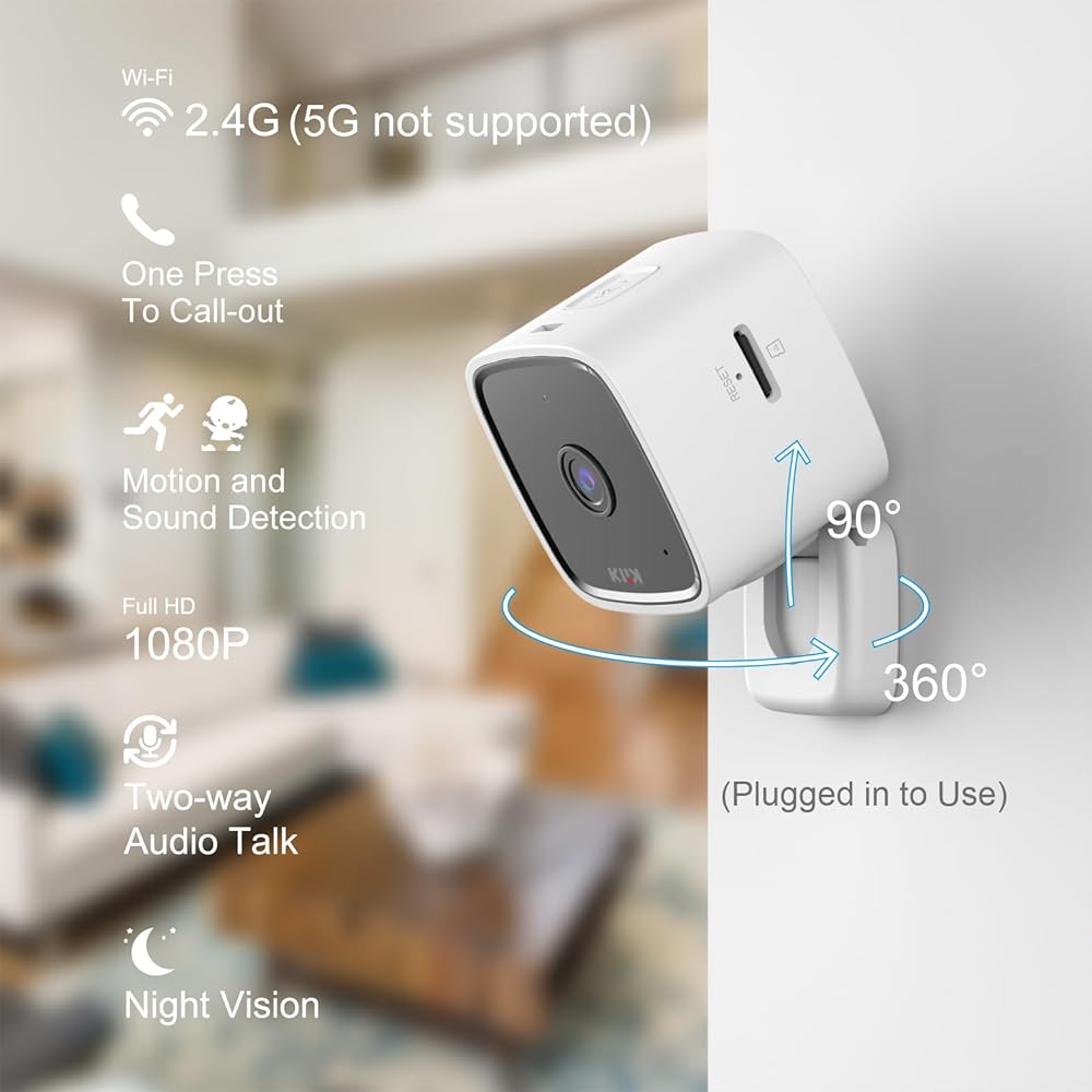 ✅【Ultra HD 1080p Resolution & Clear Night Vision】Mini size but excellent picture, with 1080P HD resolution, This in room camera displays a crystal clear smooth live video. With built-in IR LEDs, night vision up to 32ft (10m) in pitch-black, you can keep an eye on your home anytime anywhere. This night vision camera only supports 2.4GHz WiFi.