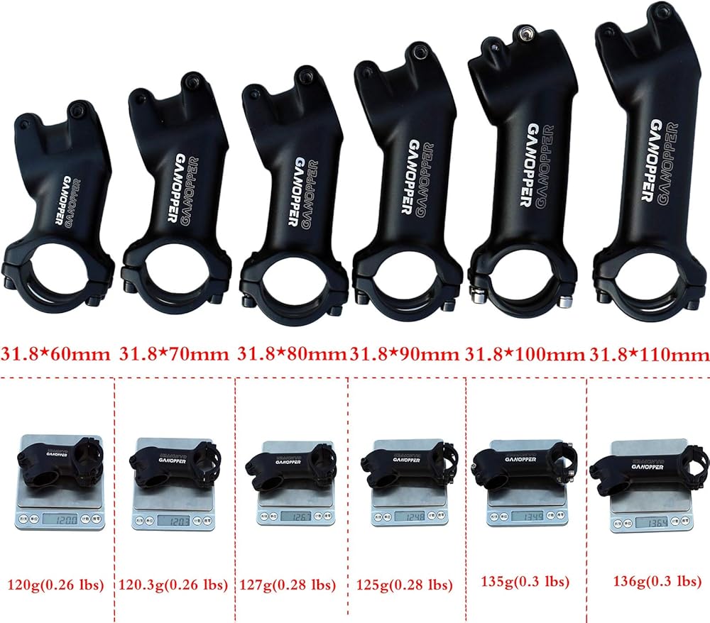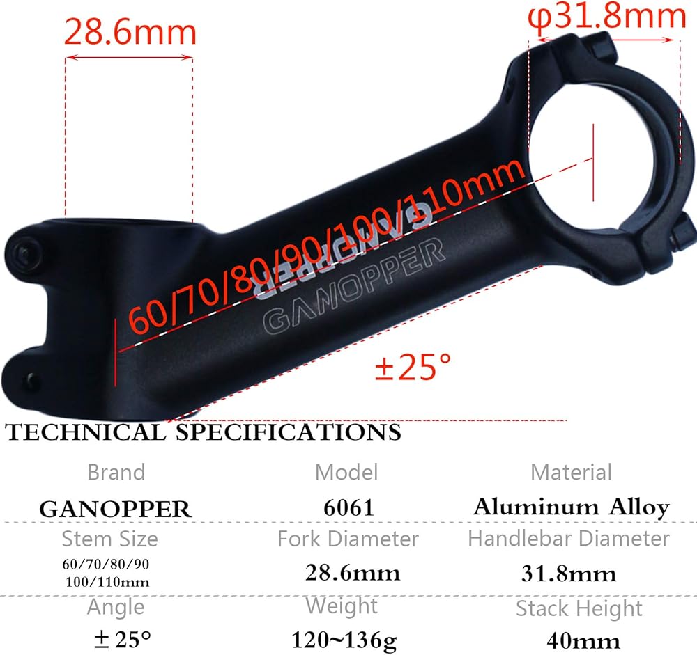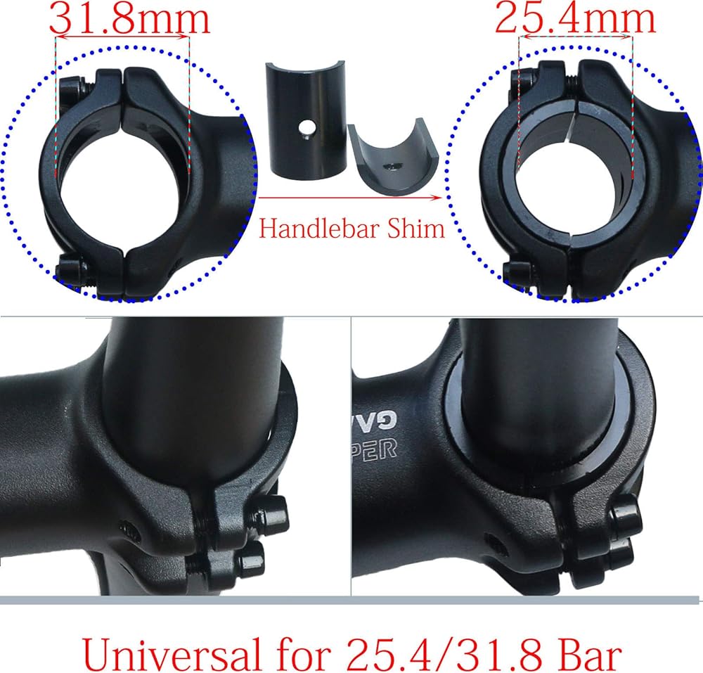 GANOPPER 25 Degree 31.8 Bike Stem with 25.4 Handlebar Shim 60mm 70mm 80mm 90mm 100mm 110mm