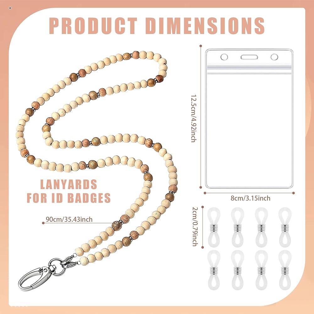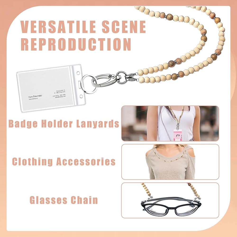 • 【مواد منسوجة】: حبال شارات الهوية مصنوعة من خرزات خشبية مقاس 8 مم، مليئة بالبريق؛ مزود بمشبك من الفولاذ المقاوم للصدأ، وهو ليس من السهل أن يبهت أو يتشوه. المادة مقاومة للماء ويمكنك استخدام حبل مطرز لفترة طويلة.