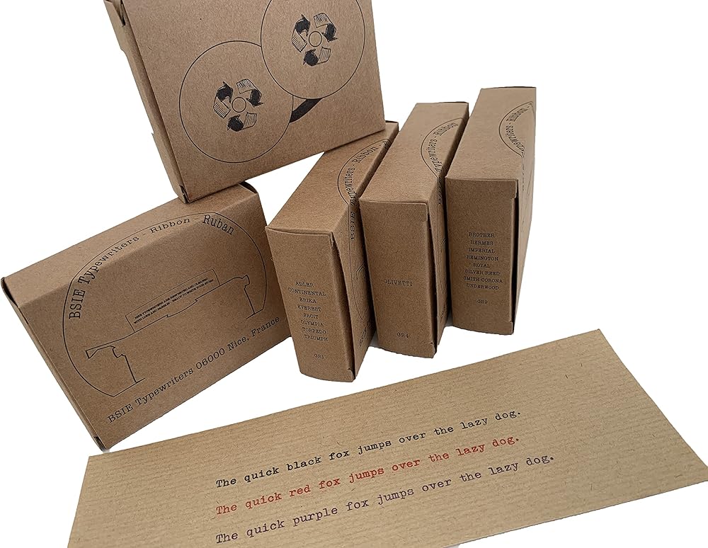 -Brand new -Air Seal -High quality ink for the best typing prints. -Easy to fit into your typewriter. Ribbons fit following typewriter models: Imperial 17 Imperial 66 Imperial 200 Imperial 200N Imperial 2002 Imperial 201,202,203, 220 Imperial 300 Portable Imperial 560 Imperial 660 Imperial 690 Imperial 770. ERIAL 7900. Imperial 795 Imperial 80, 90 Imperial 800 Imperial 970 Compact Portable Imperial Caravan Imperial Electric Imperial Fleetwood Imperial Gemini Imperial Good Company 5 and 7 Imperial Heritage Imperial Maritza Imperial Mercury. Women's MessensenNet Net Net GER 8 IMPERIAL PORTABLE 1000 IMPERIAL PORTABLE 200, 200N and 220 IMPERIAL SIGNET (and PORTABLE) IMPERIAL SAFARI SIGNET IMPERIAL TAB-O-MATIC SILVER REED Silver Reed Leader Silver Reed I (1) Silver Reed II (11) Silver Reed Seventy Silver Reed. SR 22 Silver Reed SR 100 Silver Reed SR 150 Silver Reed SR 200 UNDERWOOD UNDERWOOD 3, 4 and 5 UNDERWOOD LEADER UNDERWOOD 10 UNDERWOOD 11 UNDERWOOD 14 UNDERWOOD 15 UNDERWOOD 18 UNDERWOOD 19 UNDERWOOD 21 UNDERWOOD 400 UNDERWOOD 5 UNDERWOOD 5 5 Way Splitter WOOD 565 UNDERWOOD 565 CR UNDERWOOD 6 UNDERWOOD NOISELESS 77 UNDERWOOD RHYTHM DELUXE UNDERWOOD O.S. Underwood Portable Underwood Standard OS Brother 1500 Brother 2000 Brother 100 Brother 210 Brother 220 Brother 240T Brother 250TR Brother 262TR Brother 3060 Brother 3800 Brother 600 Deluxe Brother 650TR Brother 662TR Brother 762TR Brother 762TR Brother 7. 00 Deluxe Deluxe Brother Brother Charger 11 Brother Charger 11C Brother Charger 12 Brother Charger 2000 Brother Charger 2512 Brother Charger 3000 Brother Charger 3012 Brother Charger 3500 Brother Charger 4512 Brother Charger 750TR Brother Charger 762TR Remington: these ribbons fit Remington typewriters in width, but the spool will not fit all Remington machines - ribbons can be wind over the original spools.