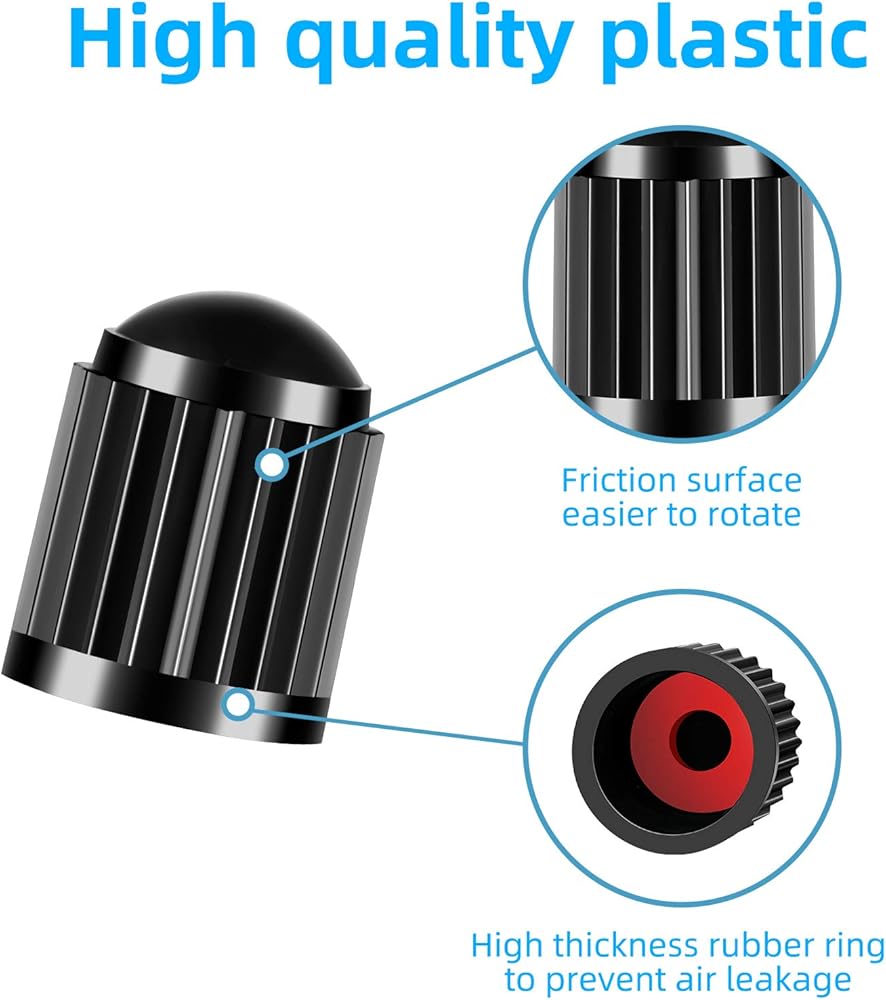 【DURABLE】Made of solid plastic, durable and well constructed, with anti-slip stripes on the surface of the valve cover dome, it's effortlessly to screw on by your fingers, install or remove easily when check your tire air pressure.