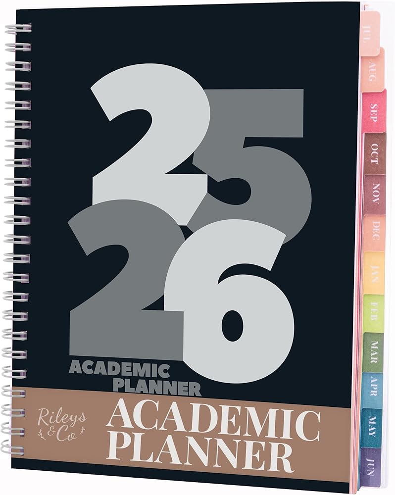 Rileys Academic Planner 2025-2026, Daily, Weekly & Monthly Planner, July 2025 - June 2026, Student Notes Pages, Twin-Wire Binding, Weekly Agenda for School & Work (8 x 6-Inches, Black, Chunky)