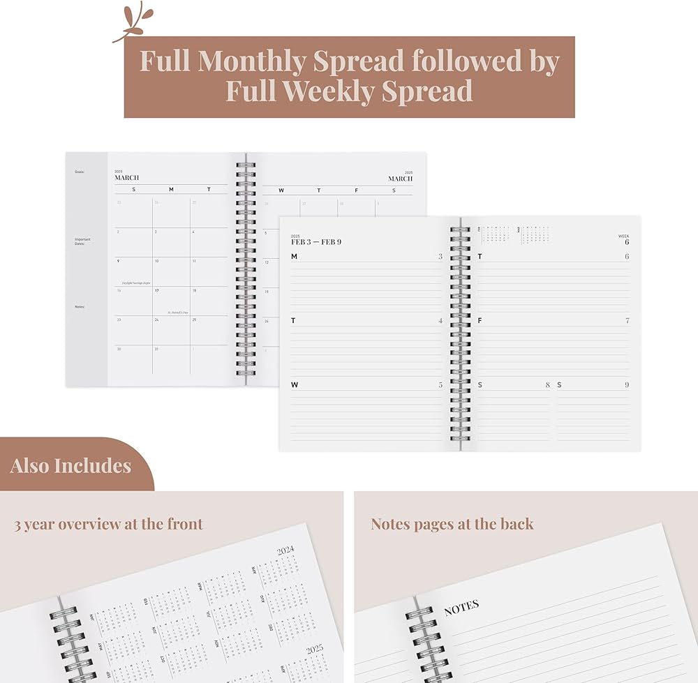✅ HOLIDAYS, NOTES & EXTRAS - Holidays are noted, so keep on top of your special dates and dream vacations. At the front is a 3-Year reference page, while at the back has Notes pages to jot down any notes throughout the year. Not only that, each weekly spread has the current and succeeding month at-a-glance! All you need to get organized.