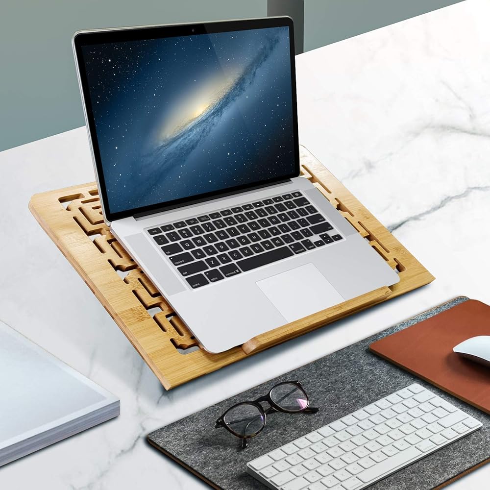 Cooling & Ventilated: The laptop stand is designed with Bamboo platform, allowing heat to flow away from your laptop, keeping it cool and preventing overheating.