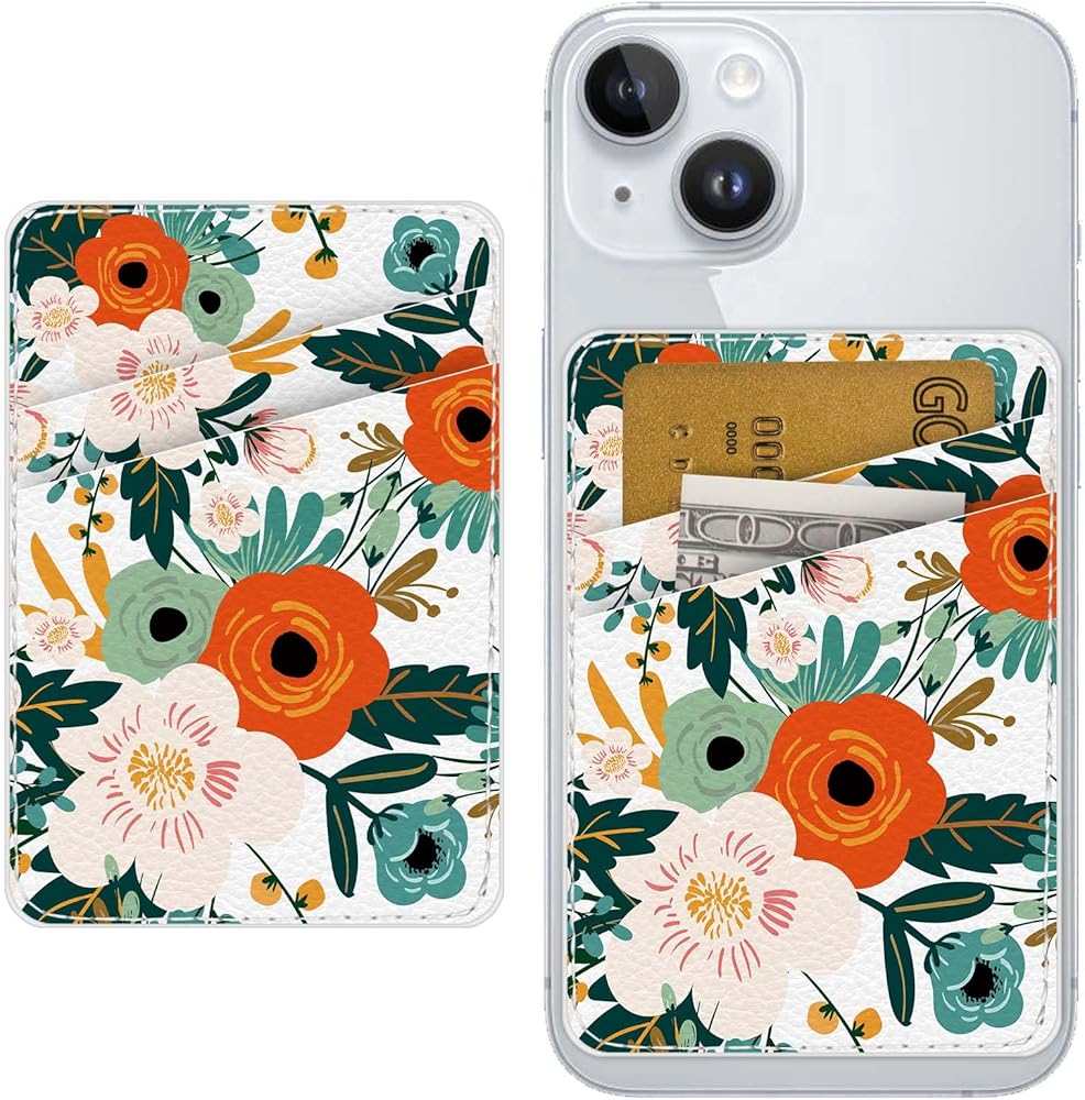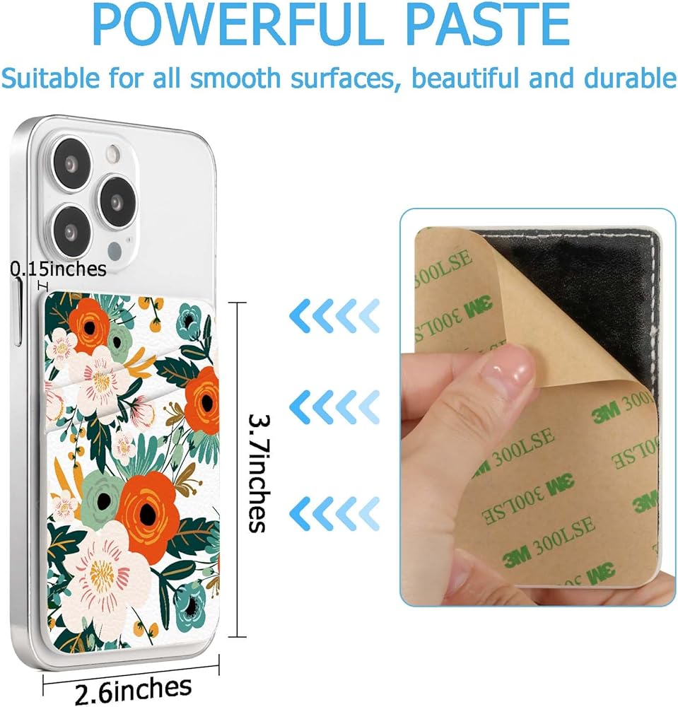 Leather Phone Card Holder Phone Wallet, Stick Back Phone Wallet Sticker Stylish Phone Case Credit Card Holder, Suitable for iPhone, Samsung, Android and Most Smart Phones.Green Leaf Flower