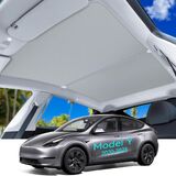 【Customized design】: Custom fit for Tesla model Y 2020 2021 2022 2023 Version, designed this sunshade after measure it's size, already tested on the model Y for many times, the size is correct,2 piece design make it won't sag,Fit all Tesla Model Y Vehicles.