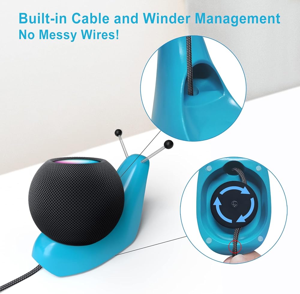 Blue Speaker Stand Compatible with HomePod Mini Speaker, Anti-Slip Snail Desktop Speaker Stand with Cord Management Function
