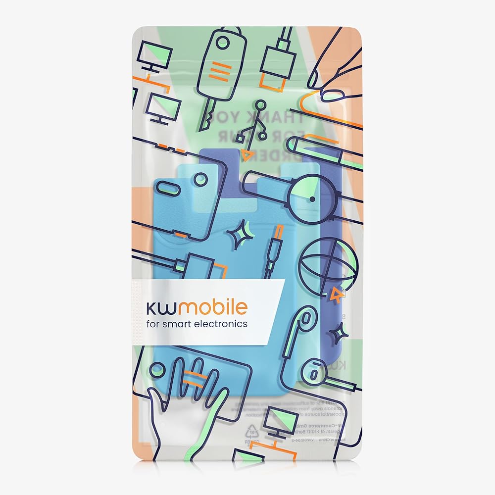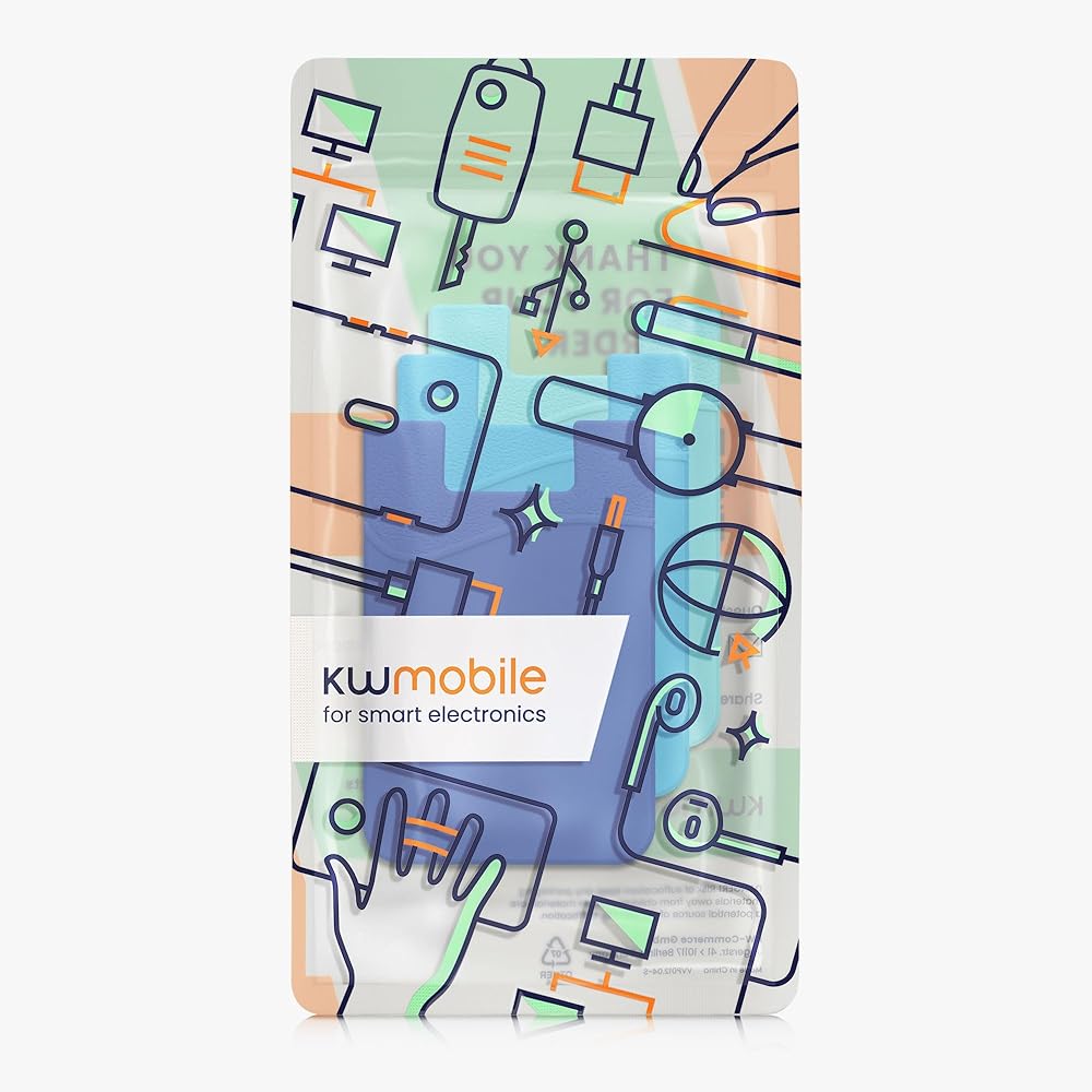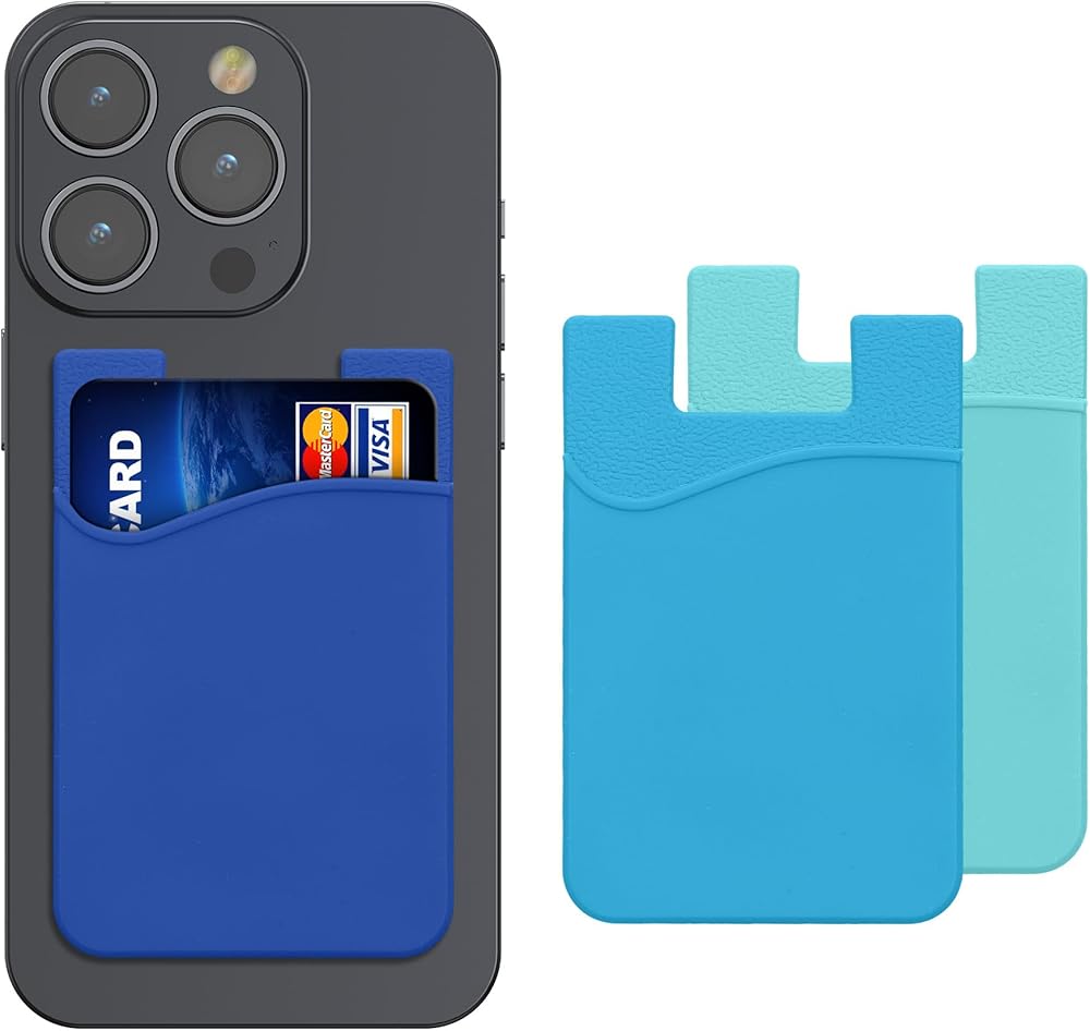 kwmobile Stick-On Card Holder for Phone (Set of 3) - Silicone Wallet Card Holders - Sticks on to Cell Phone Back or Case - Light Blue/Blue/Dark Blue