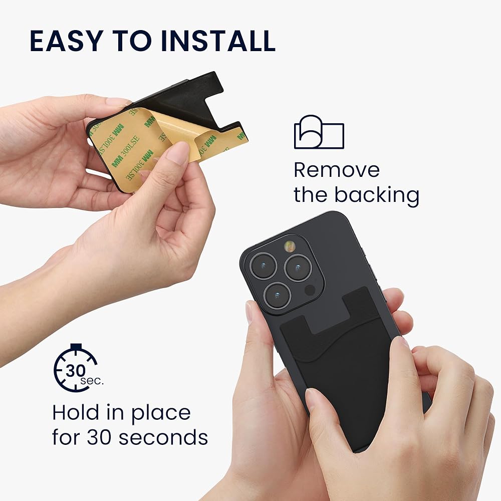 - EASY TO INSTALL: Simply stick the adhesive wallet card slot onto the back of your cell phone or mobile case