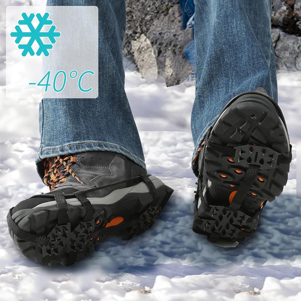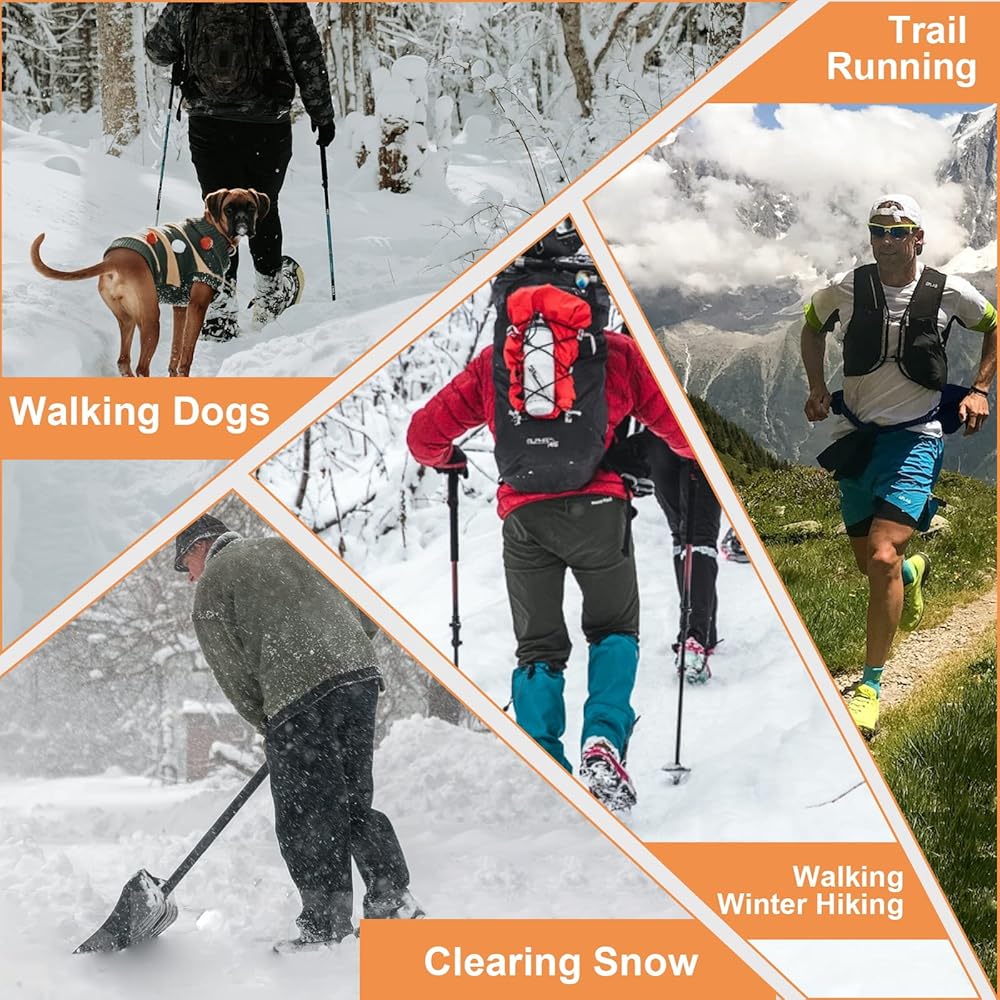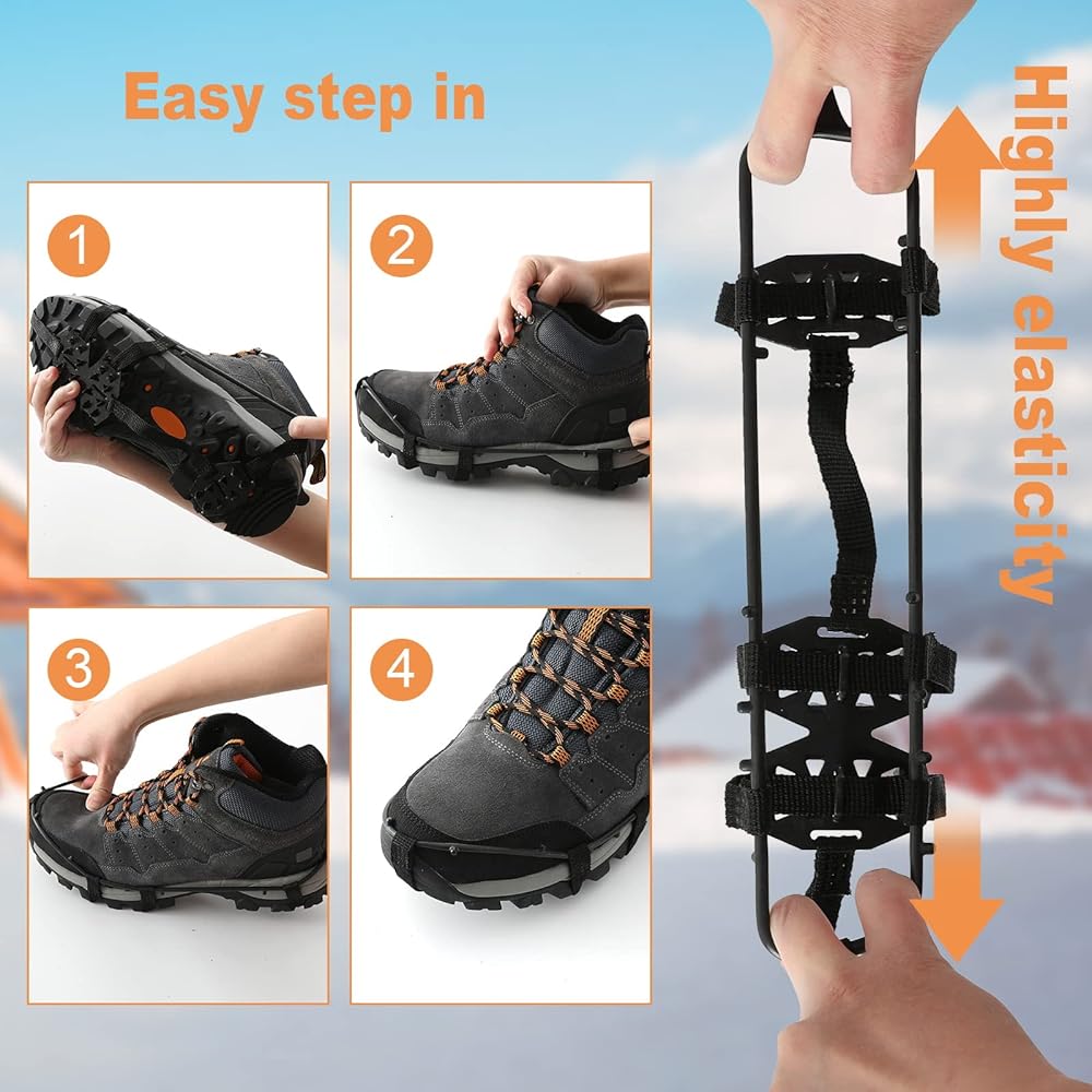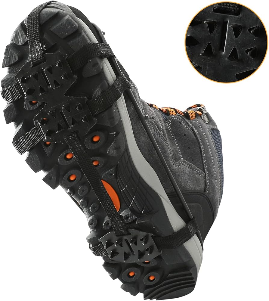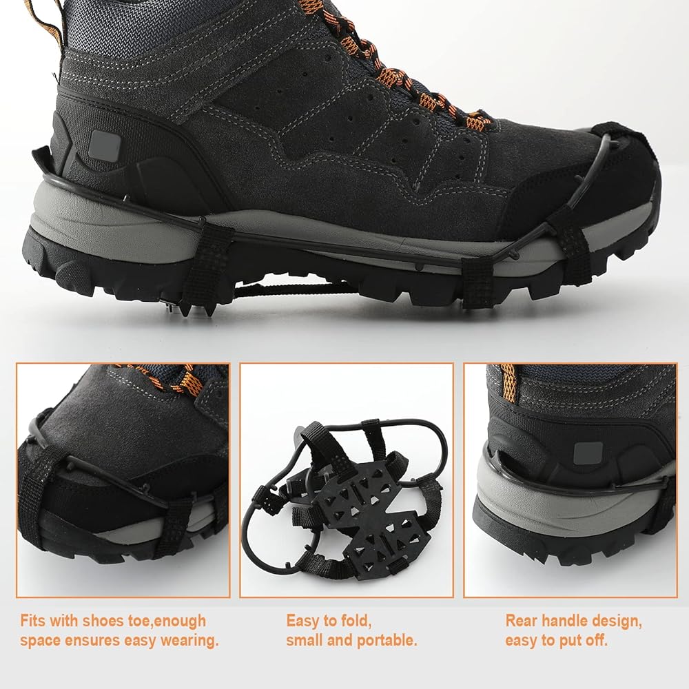 ACTIVE IN WINTER – The gripper spikes are ideal for boots, sneakers, casual and dress shoes. Great for Ice Fishing, Hunting, Walking, Jogging, Hiking, Running, Snow Shoveling, etc