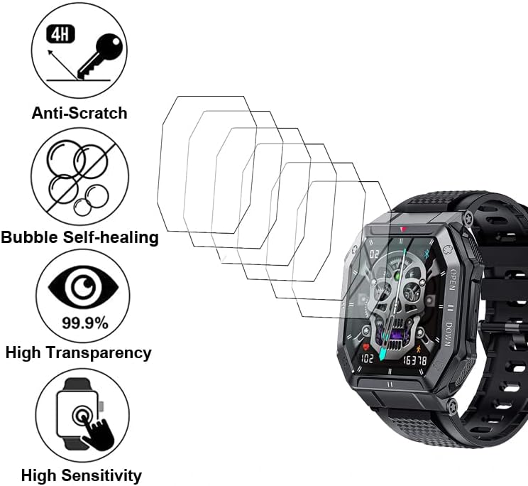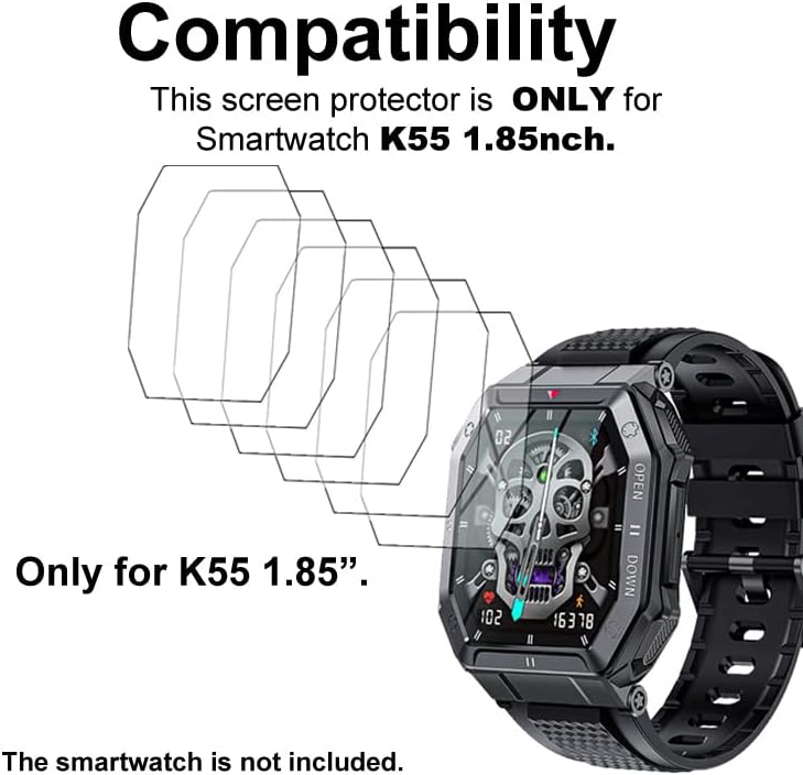 Soft Screen protectors Compatible with smartwatch Bassizo, EIGIIS K55 1.85” Rugged Military Smart Watch, you must make sure your watch model number is same before buying