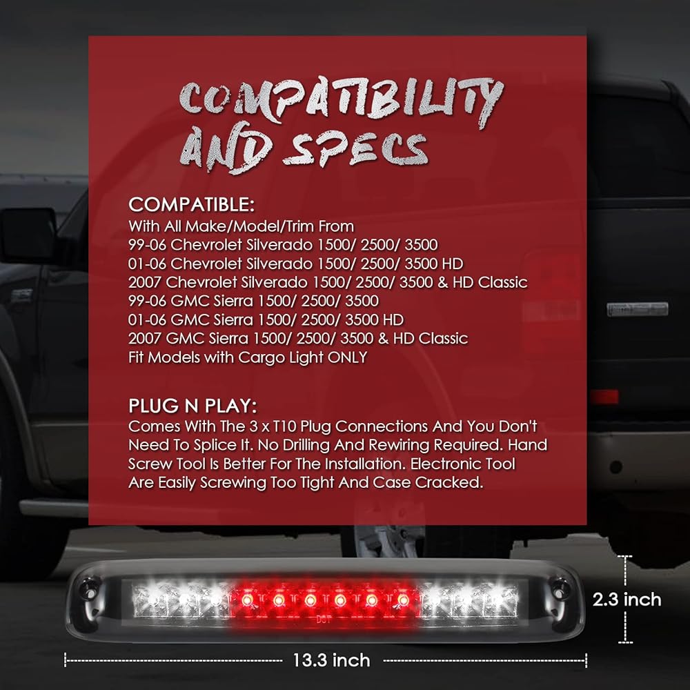 【Waterproof】: Ready to take on any kind of weather. This LED 3rd Brake Light made from ABS materials with high-density foam mounted back, providing the most durable light, to ensure more resistant to rain, dirt, snow and ice accumulations.
