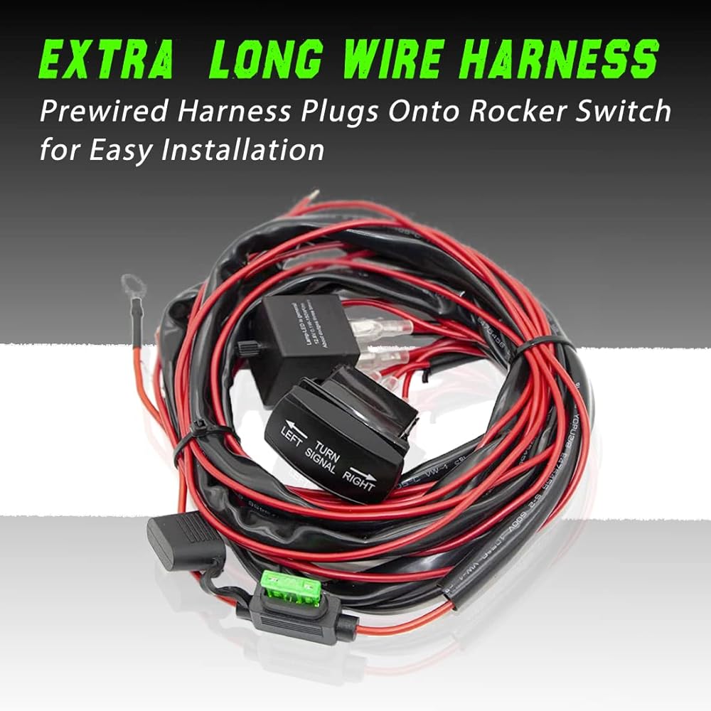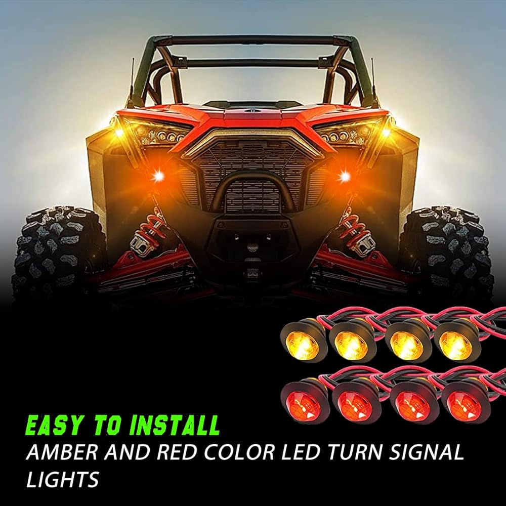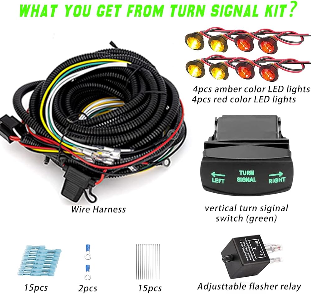 ESSENTIAL KIT: ATV Turn signal kit Including amber and red turn signal lights for front and rear, 40 feet prewired wiring harness,12V 40A Flasher Relay.