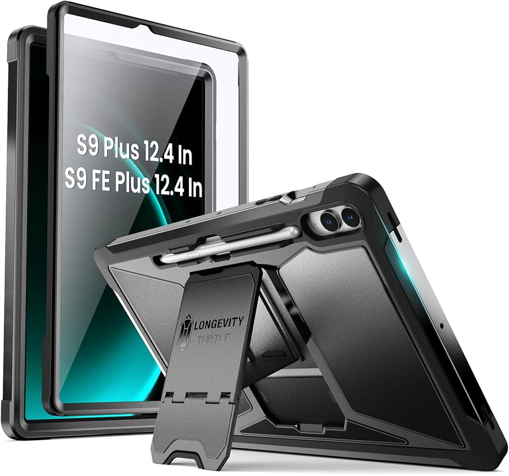 ZtotopCases for Samsung Galaxy Tab S10 Plus/S9 Plus 5G Case 12.4 in, Built-in Screen Protector/S Pen Holder/Kickstand, Full-Body Dual Layer Shockproof Protective Cover for Tablet S9 FE Plus, Black