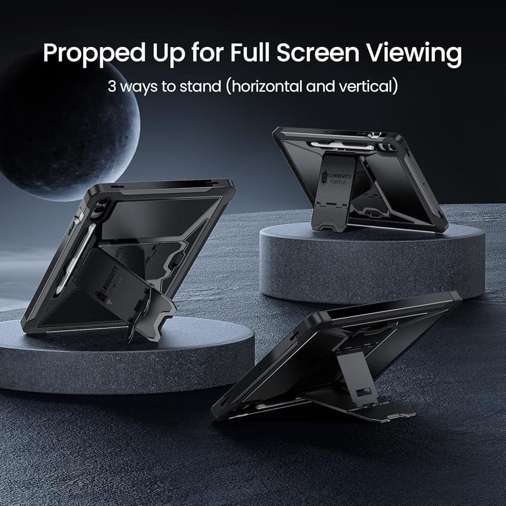 🌟【Kickstand & S Pen Holder】Functional pop-out kickstand supports different angles, can adjust your device to a comfortable viewing or typing angle. Built-in S pen holder (S Pen NOT included).