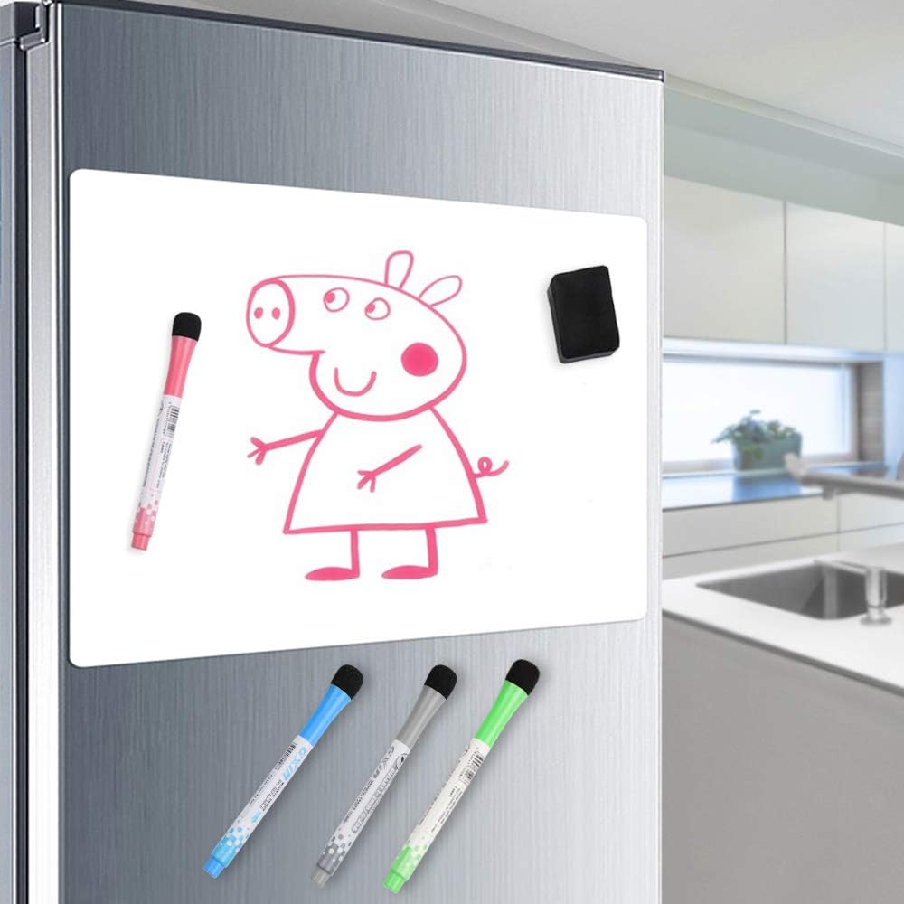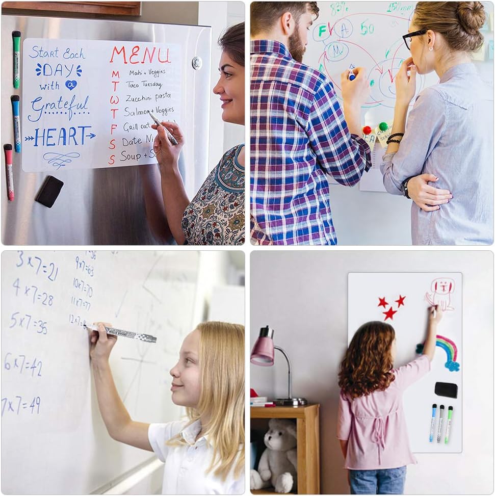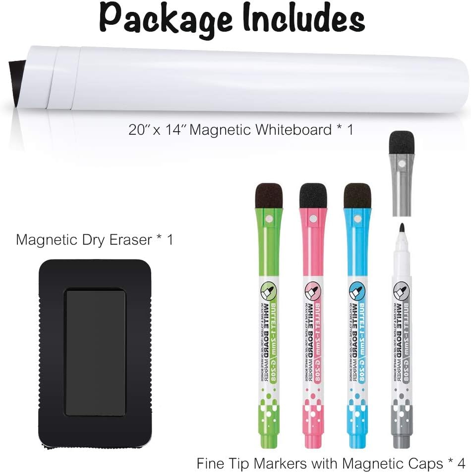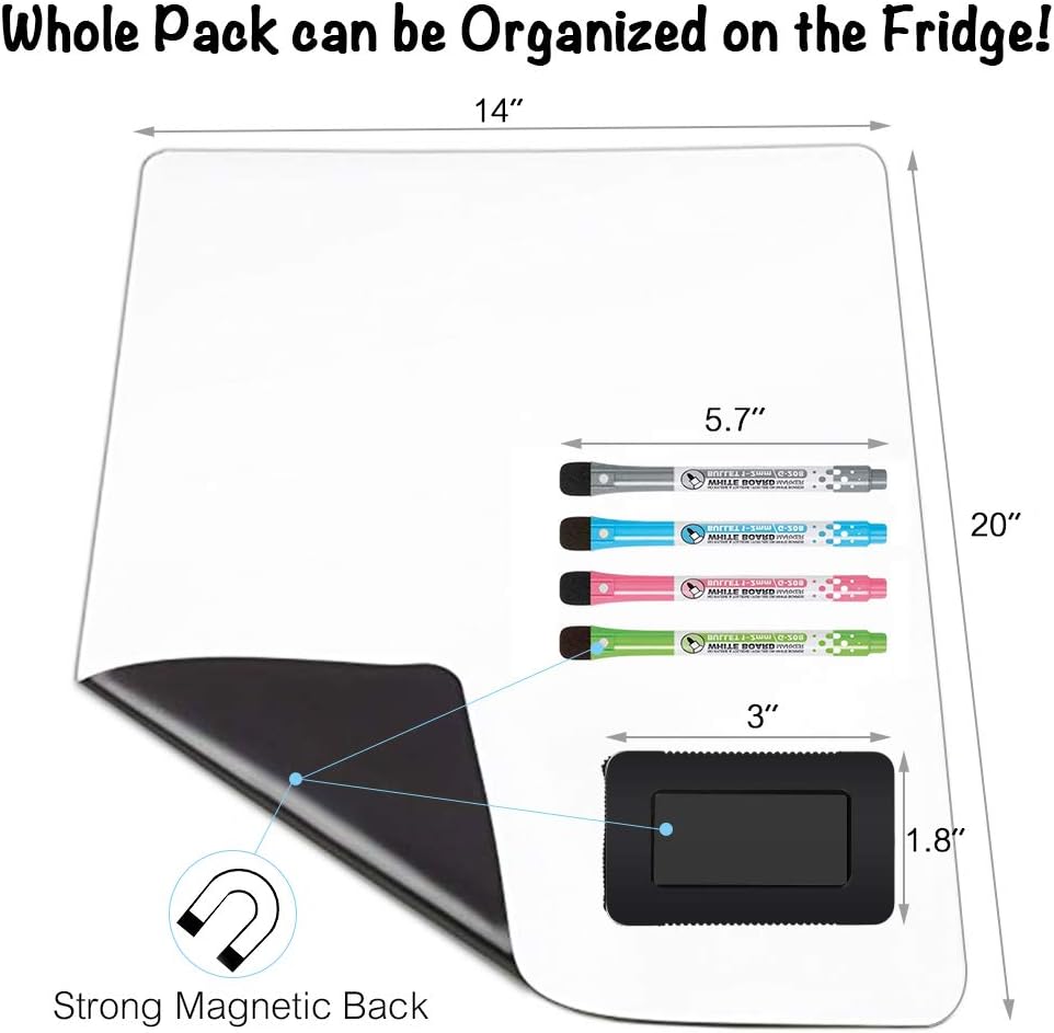 Magnetic Whiteboard for Fridge, Large 20 x14 inch Dry Erase Board for Refrigerator, Magnetic Self Adhesive White Board Sheet Reminder Notepad w/Eraser 4 Markers for Memo Grocery List Office Planner