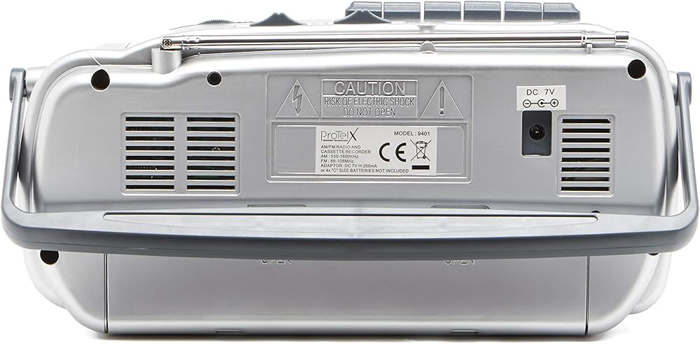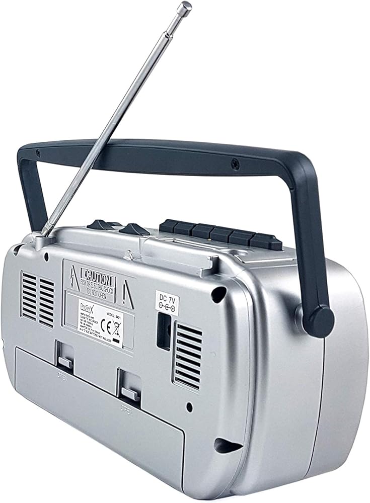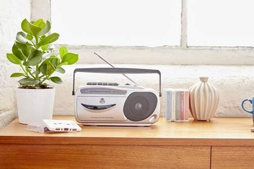 - Portable cassette player / recorder with AM / FM radio with carry handle (folds down)