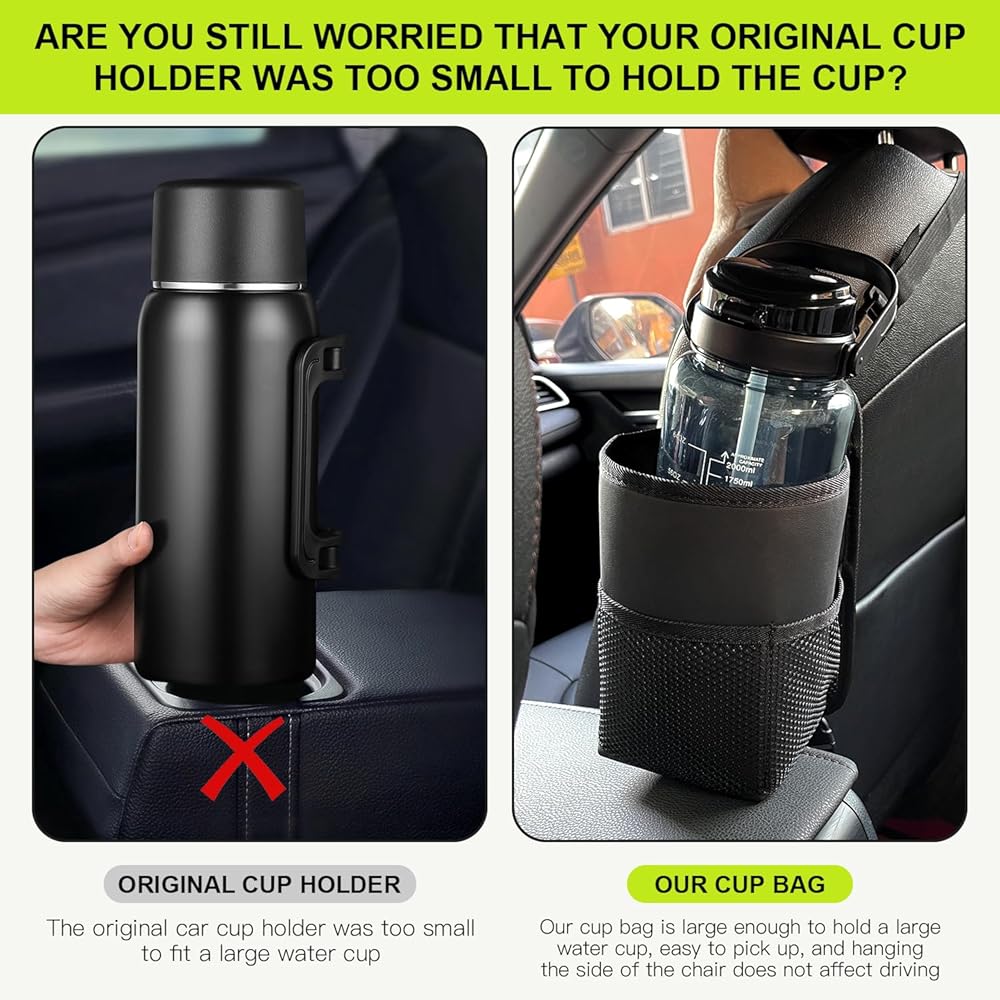 【 Multifunctional Storage Bag 】The mesh bag on the side of the car cup expander can hold some common small objects, such as documents, cards, mobile phones, keys, change, glasses, etc. Transparent mesh design is easier to find things. The internal size of the water cup bag is 4.72x4.72x7.48 inches/12x12x19cm, which is large enough to hold larger items such as large insulated cups, large water bottles, umbrellas, snacks, etc. Do not occupy the position, keep the car clean and tidy.
