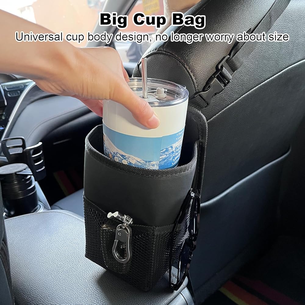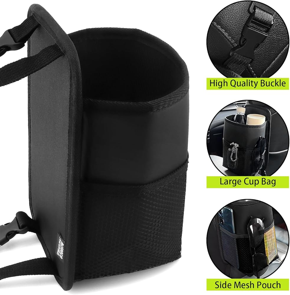 【 Easy Installation 】Just put the water cup bag on the side of the chair hanging on the seat top headrest position and the bottom of the chair, then buckle it tightly and adjust the length of the rope to have a perfect car cup holder storage bag.