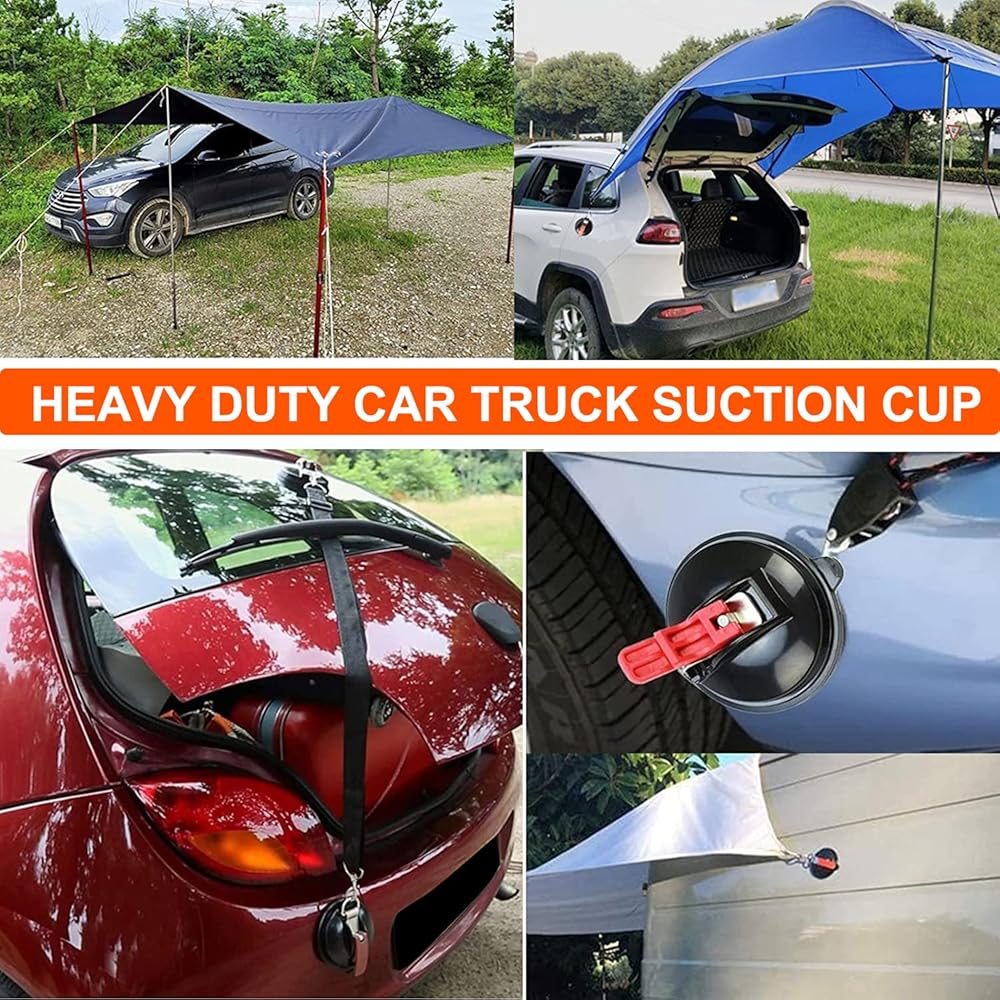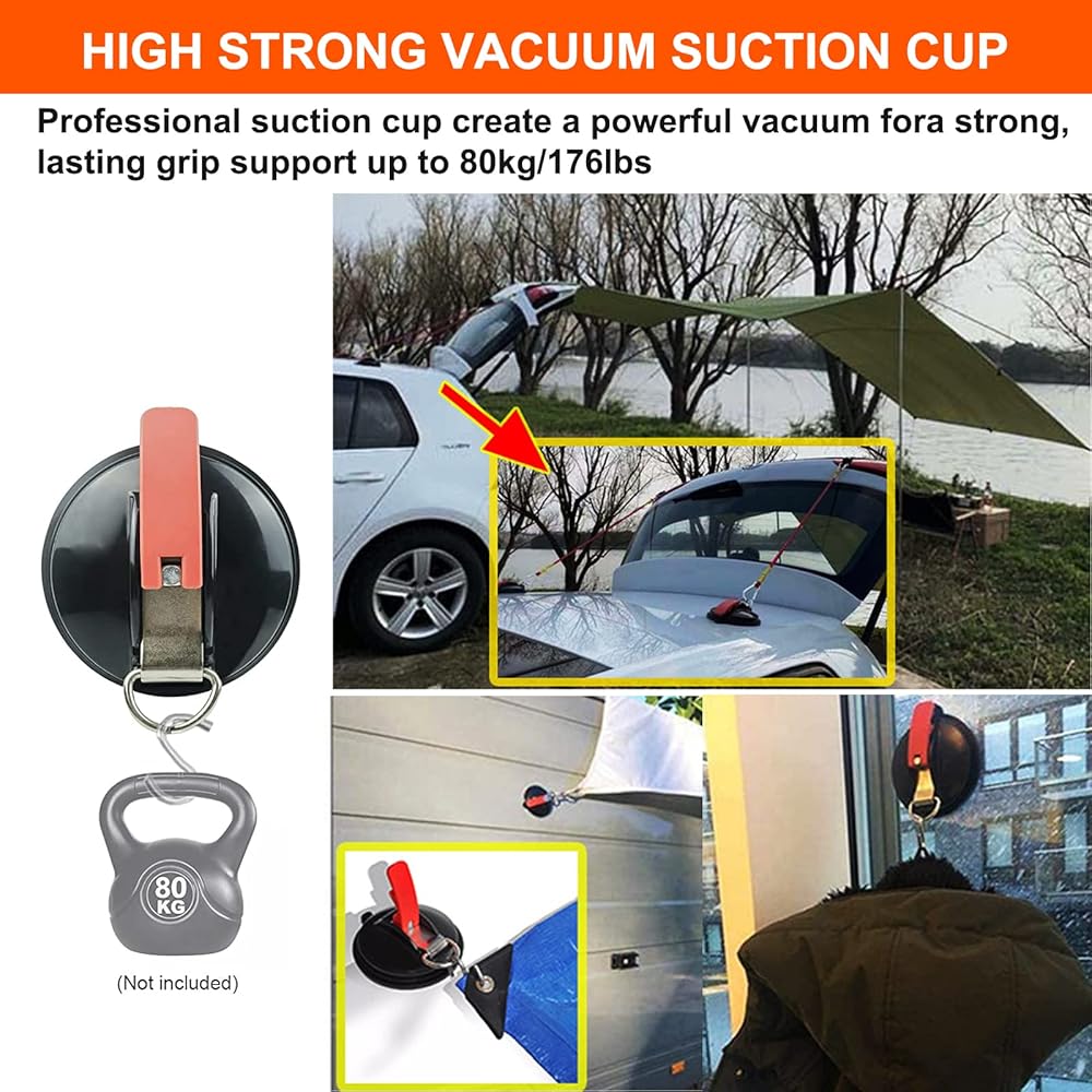 ❤️【STRONG AND REUSABLE】The suction cup holder can fix almost anything without worrying about unsafe loads or scratch car surface or smooth wall. It can fix the tent and the complete tarpaulin, which is very convenient for camping.Can be washed with water, unlimited use.