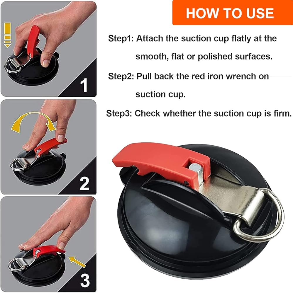 ❤️【EASY TO INSTALL】4Pack of vacuum suction cups are easy to install, 1.Just place the suction cup anchor on a smooth and clean surface. 2. Fit the suction cup flatly to the force .3. Pull back the red wrench on the suction cup . 4. Check if the suction cup is firm. Note: After use, just pull the red button upwards,then remove, please do not pull the suction cup directly.