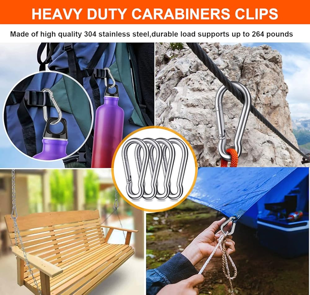 ❤️【UNIQUE COMBINATION】You will get 4pack vacuum suction cup, 4pcs heavy duty carabiners clips, 4pcs heavy duty tarp clips,and free 2pcs 12inch mini bungee cords that meet your different needs. You can attach the carabiner to any chains, ropes, home gym equipment, or any other lifting machine easily. heavy duty tarp clip clamps is ideal for tarp clip,car/truck cover,awnings ,outdoor camping,caravan canopies, boat cover, pool cover,swimming pool covers or any fabric covering that requires additional support points.