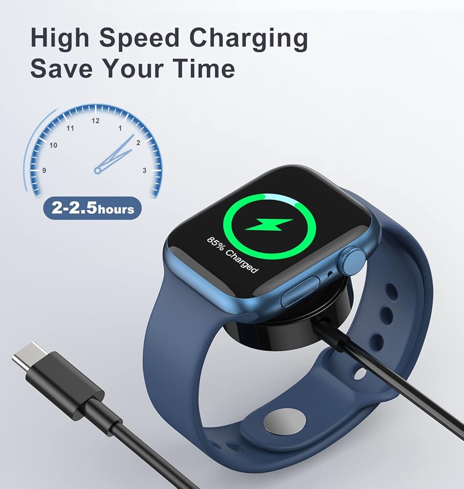【Fast Speed Charging】 Apple Watch charger cable built-in newest &advanced chip to support fast and safe charging speed, a full charge takes about 2.5 hours. After the watch is fully charged, it will automatically stop charging, and the watch will be protected, it will not be damaged by overcharging.
