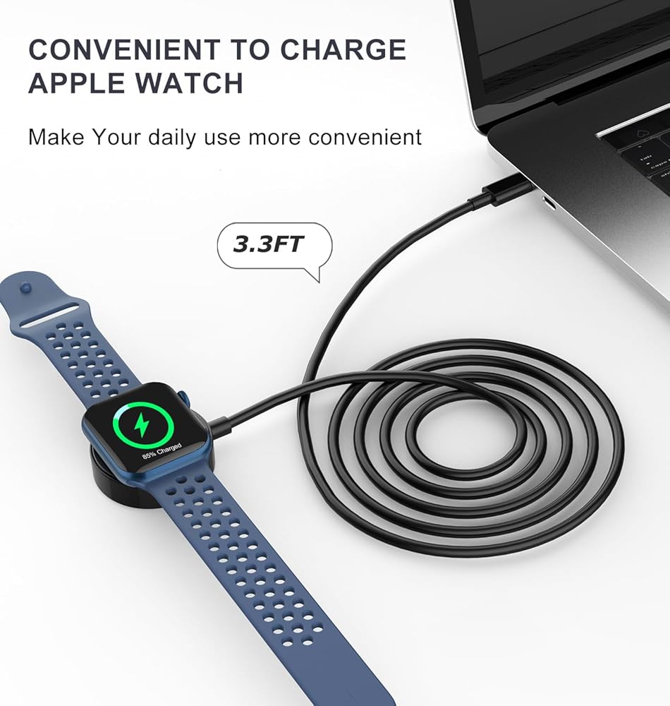 【Portable design】 You can bring it with you on your holidays and all your travels. Toss it into your backpack and ensure reliable charging for your iwatch wherever you are. The 3.3Ft charging cable length is the perfect length for convenience, not too long, not too short.