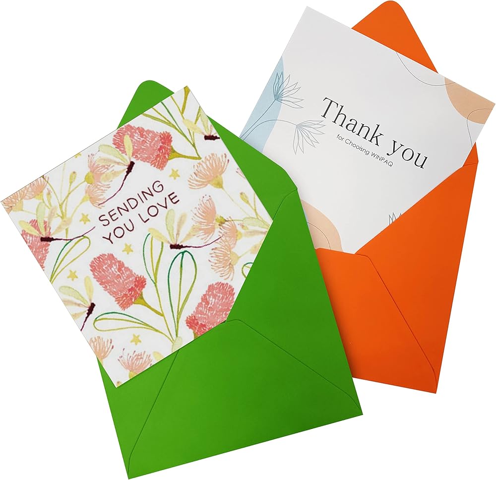 ✉ BEAUTIFUL OF 5 COLOR - If you want a high-quality colorful invitation envelope, this is the item for you. Made from 21lb (80gsm) paper. The 5 colors respectively are Red, Orange, Yellow, Green and Blue.