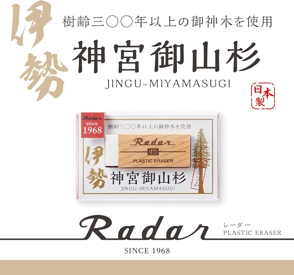 Seed Eraser, Radar, Shindu Miyamatsuri Radar, White, Wood Grain Pattern, EP-SMS is a radar eraser that uses the precious "Shrine Misyama Cedar" for over 300 years.