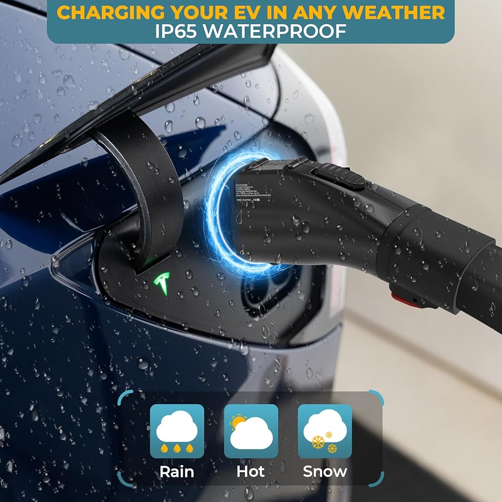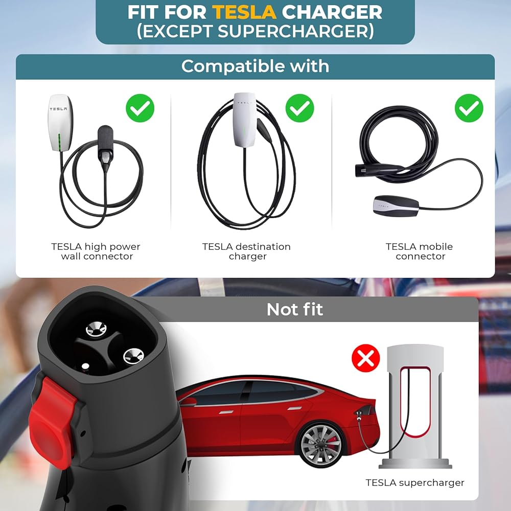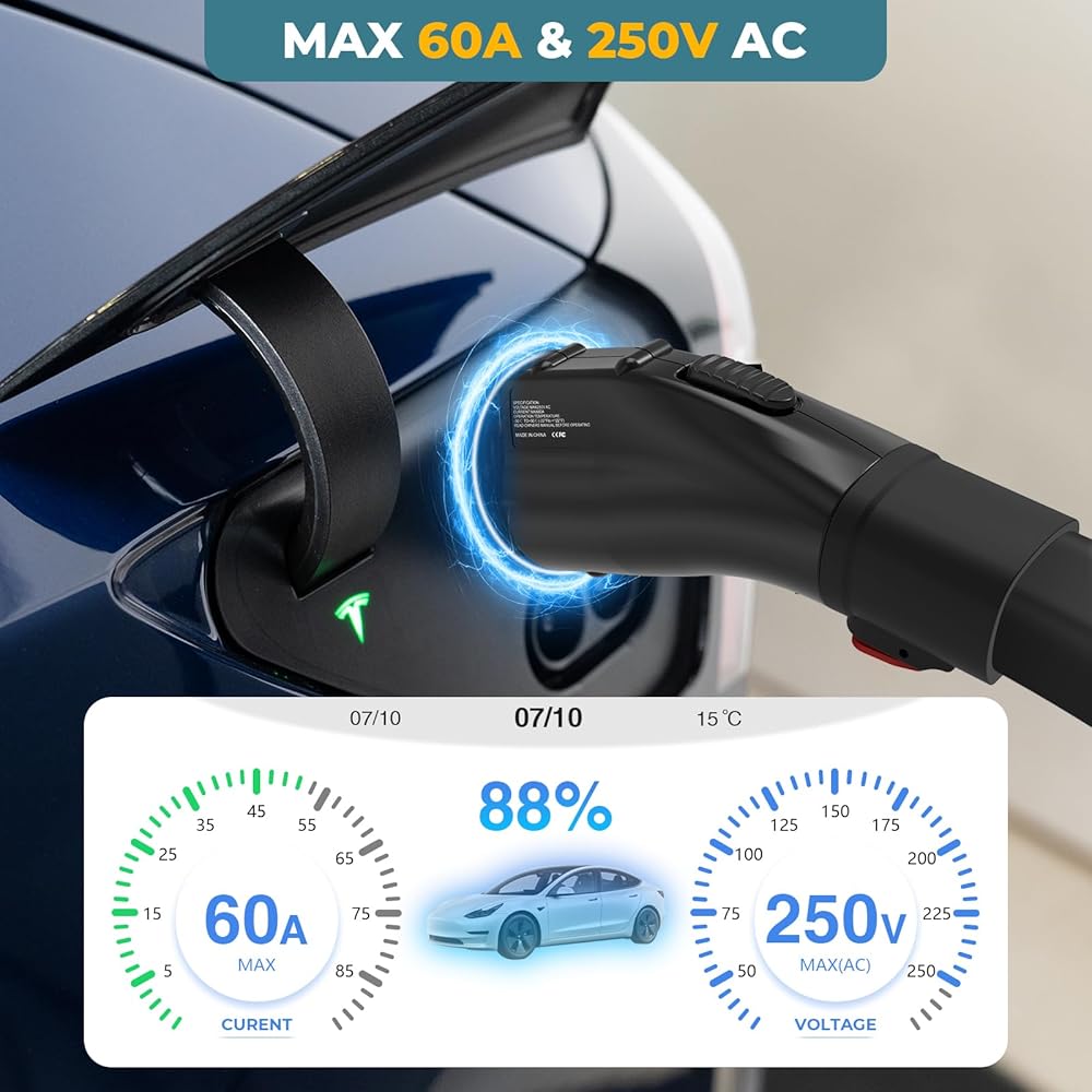 【PORTABLE】The Tesla Adapter is compact and durable, making it ideal for charging on the go; Keep it conveniently in your car to charge your electric vehicle quickly and easily.
